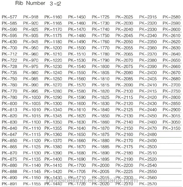 PK section poly v belt sizes available: