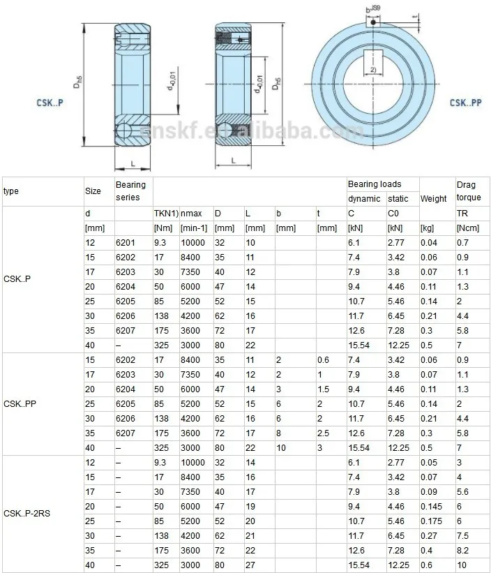 17*40*12 High precision CSK17 one way clutch bearing csk17pp 2rs