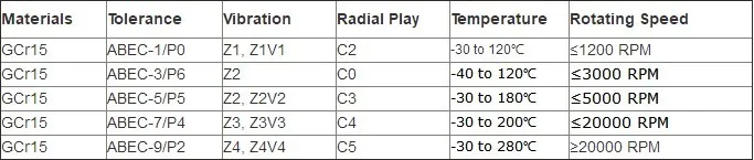2). Tolerance: ABEC-3(P6),ABEC-5(P5);