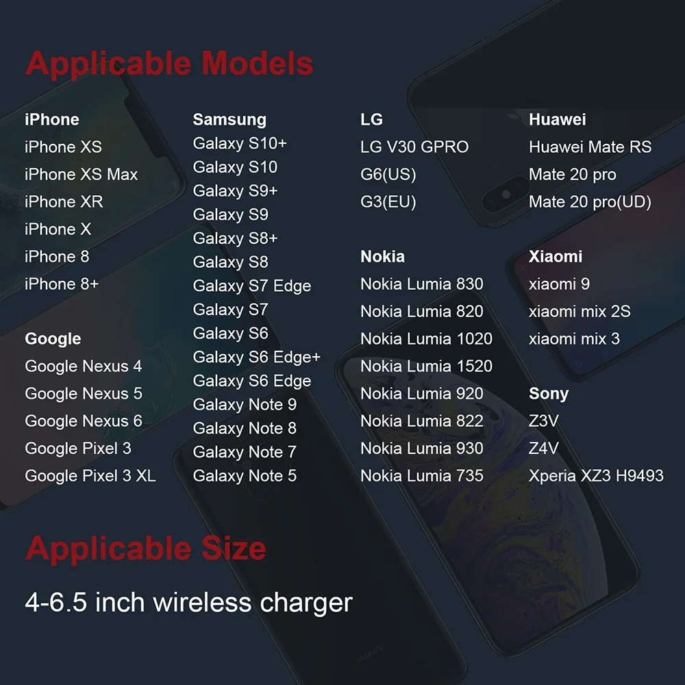 Compatible for:All devices with wireless receiver or QI supported devices. Feature: Auto open and close