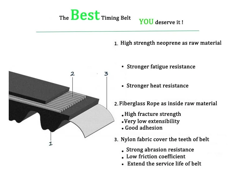 TIMING BELT ARE CONSISTS OF TENSILE CORD,BACK BELT, BELT TOOTH,AND NYLON FABRIC