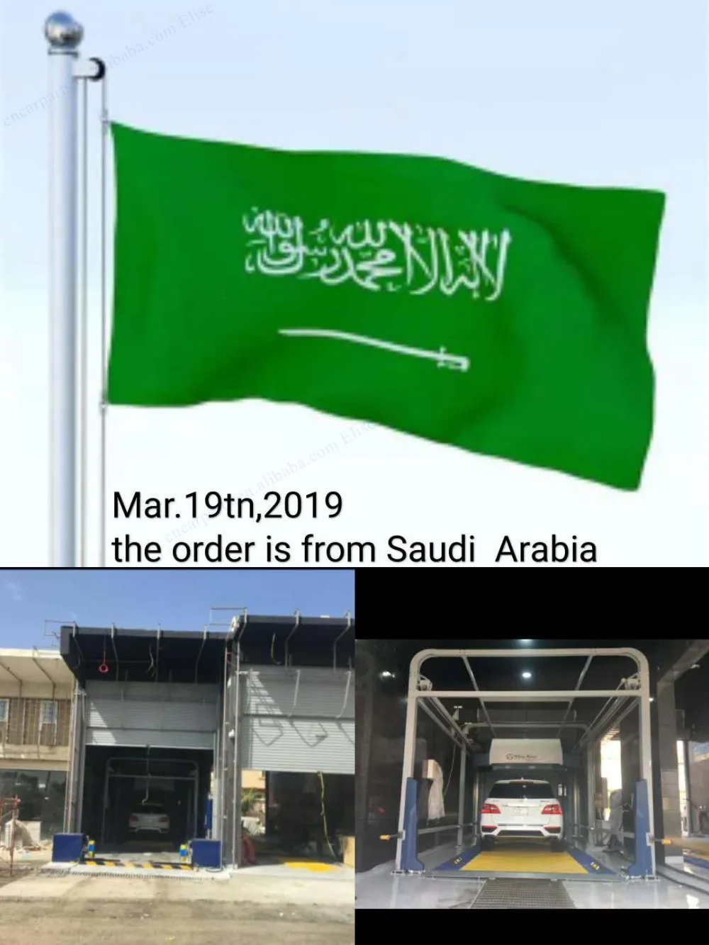 LED sign and voice system guide customers to park vehicle in the right position. When the vehicle is out of washing area, the system will remind customer to park vehicle in the right position to continue washing.