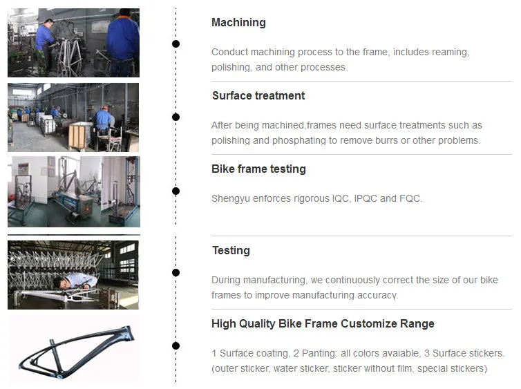 Our mountain bicycle frame, also known as MTB frame is available in 12",14",16",18",20",22",24",26",27.5" and 29" models, and comes in various colors and baking finishes to suit your requirements.