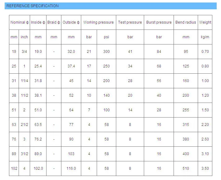 B. we can produce hose with large size from 3/16 to 4 inch.