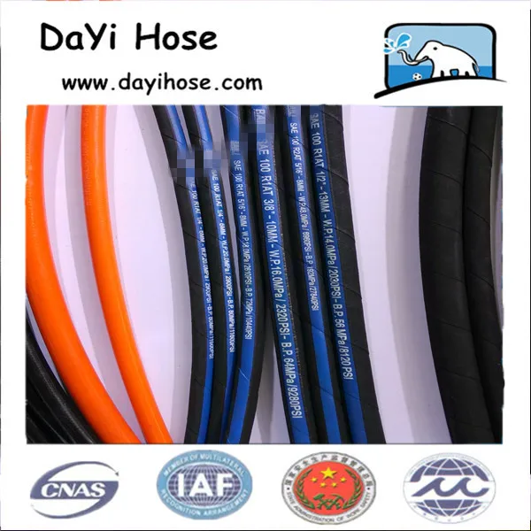 | SAE100R 1AT CONSTRUCTION: This hose consists of an inner tube of oil synthetic rubber, single wire braid reinforcement, and an oil and weather resistant synthetic rubber cover. APPLICATIONS: Hose range suitable to carry hydraulic fluids such as glycol, mineral oils,fuels,lubrication,emulsion,hydrocarbons etc. WORKING TEMPERATURE: From-40°C up to +100°C |