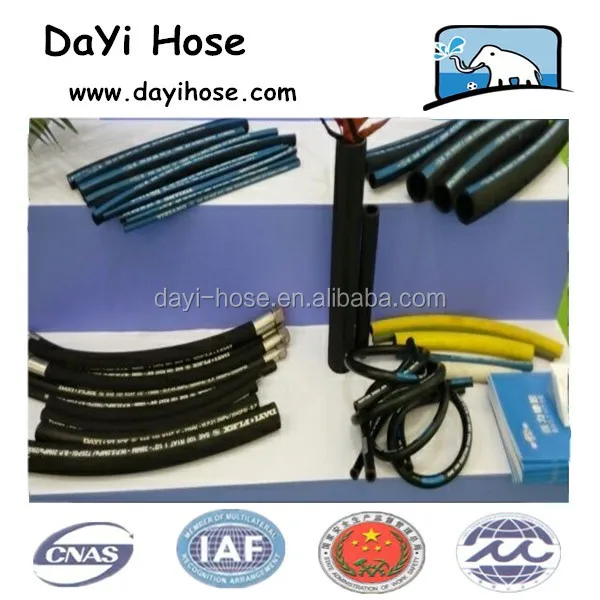 This hose consists of an inner tube of oil synthetic rubber, two wire braids reinforcement, and an oil and weather resistant synthetic rubber cover.