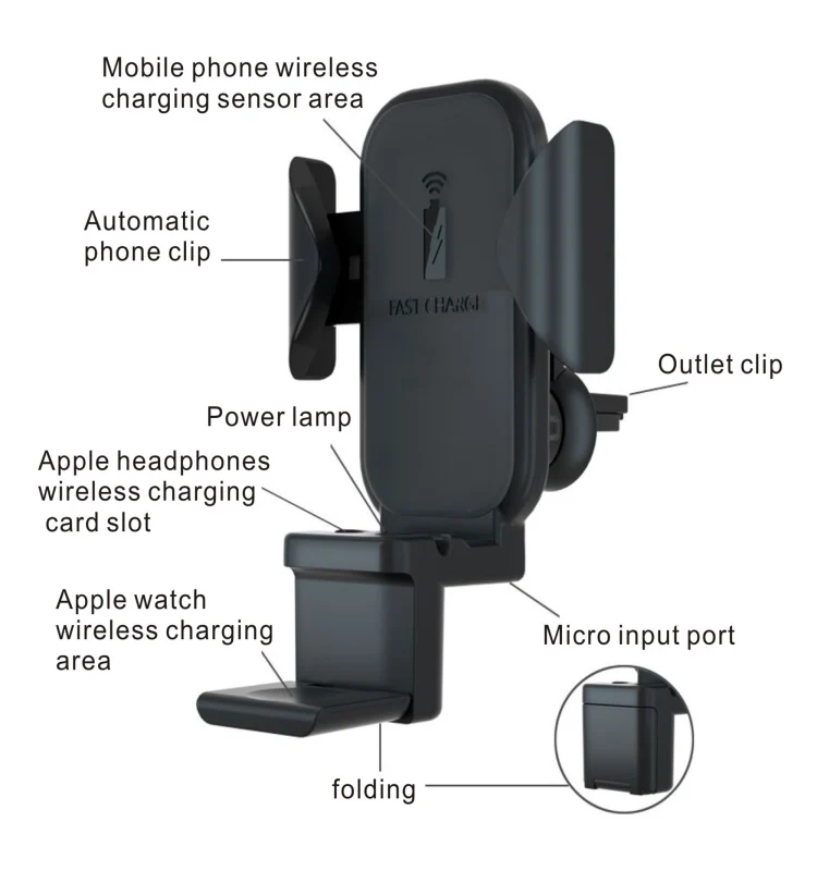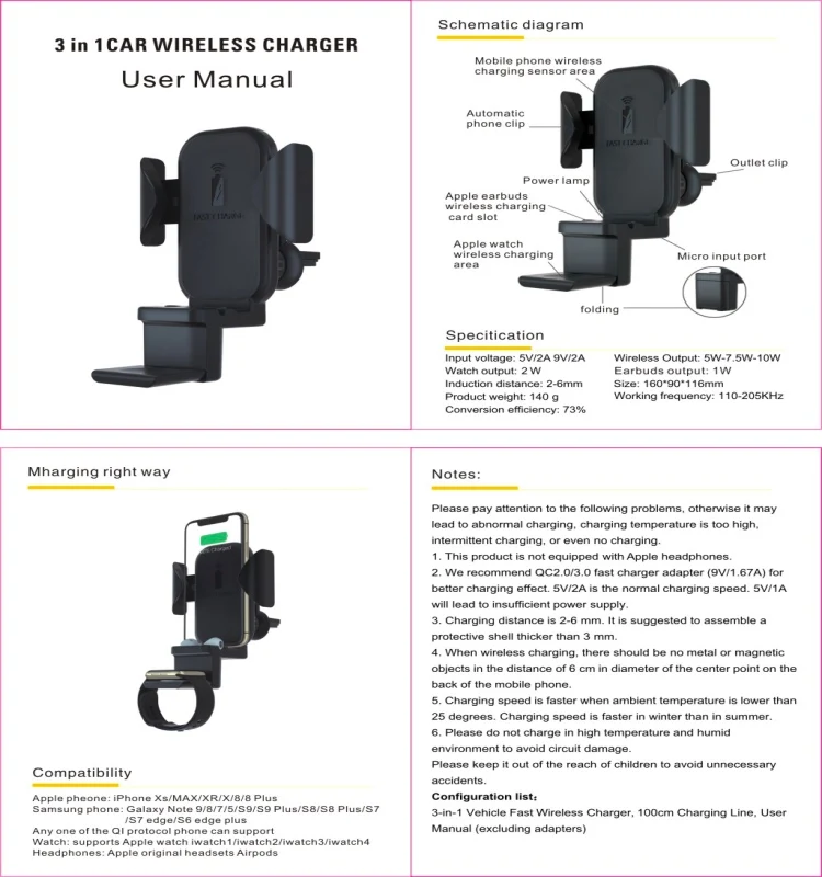 2019 innovative product 3in1 Wireless Car Charger with watch and earbuds charging function