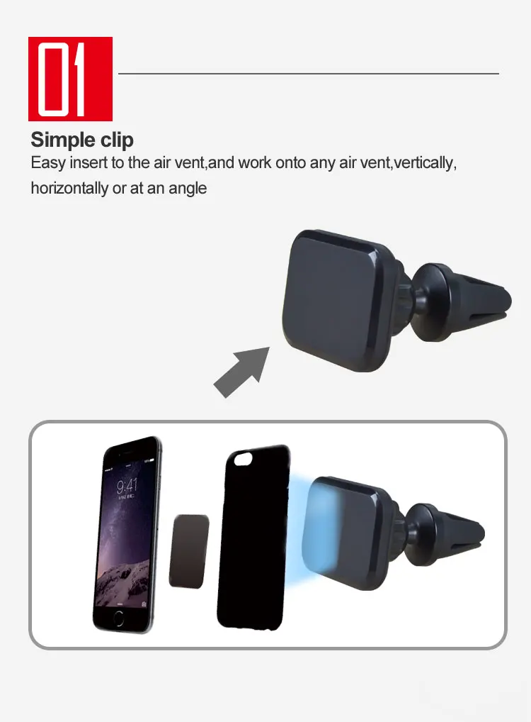 2018 top selling car holder air vent mount for cell phone car rubber mount with magnetic car ceiling munt Product Description