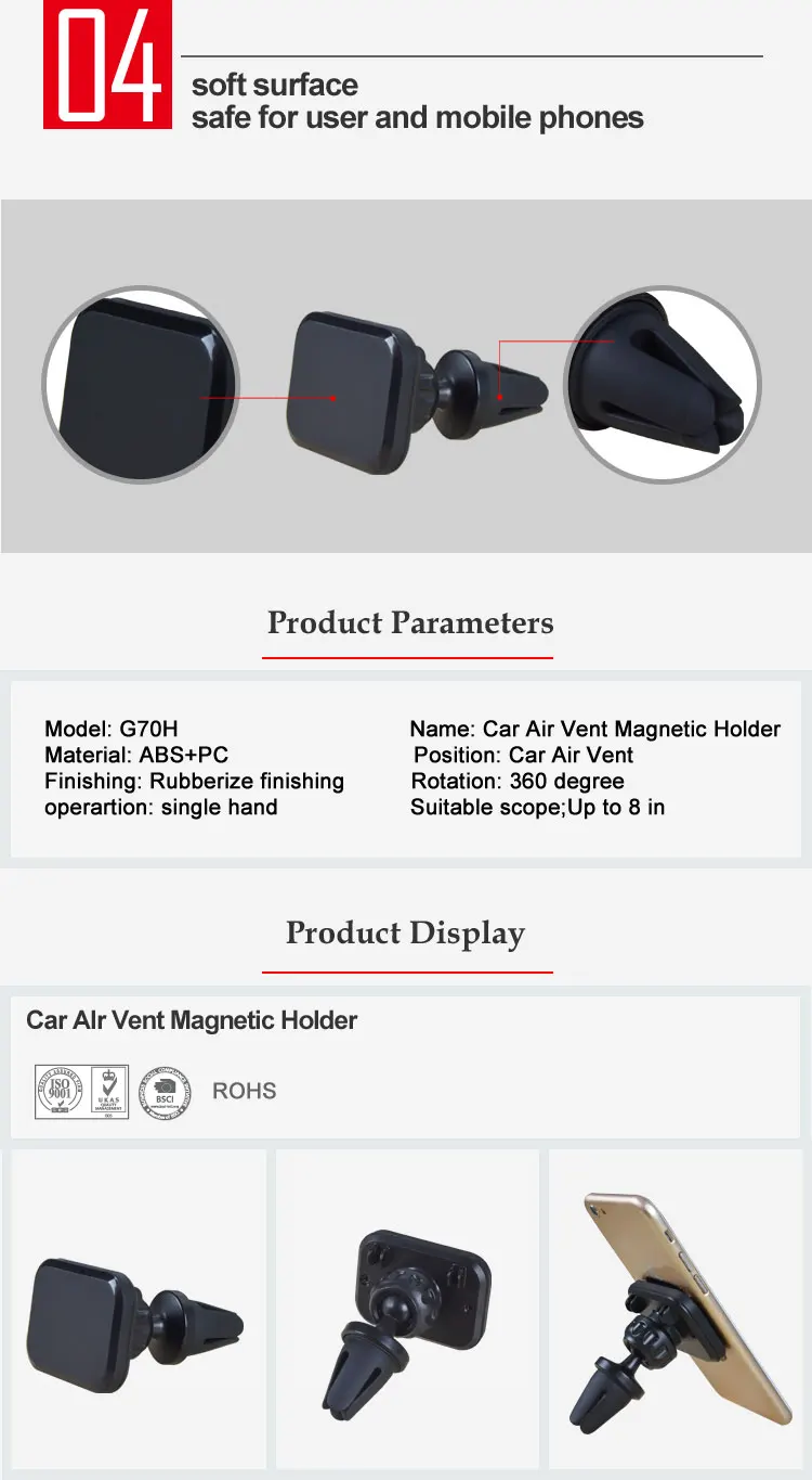 2018 top selling car holder air vent mount for cell phone car rubber mount with magnetic car ceiling munt(G70H)