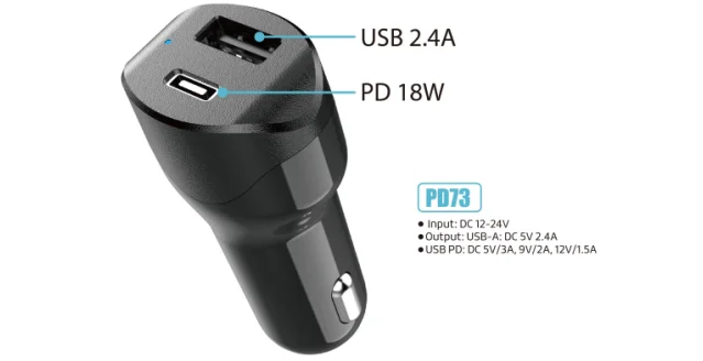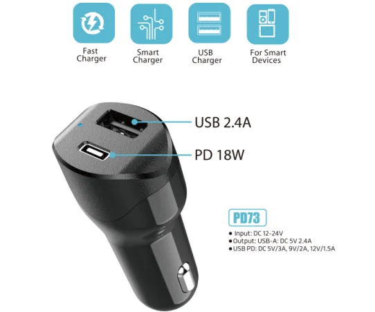 Model::PD73A-QC3.0 PD type-c fast car chargers mobile phone dual usb port charger adapter