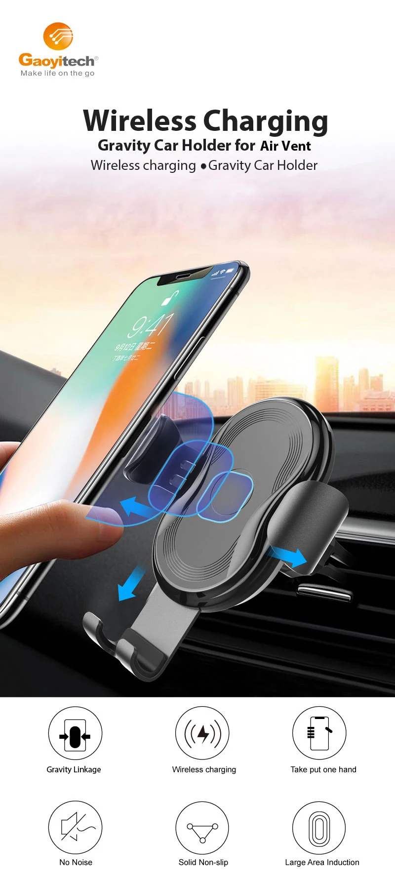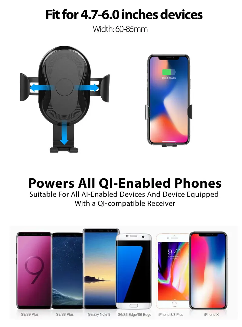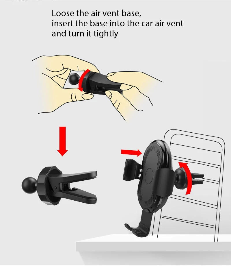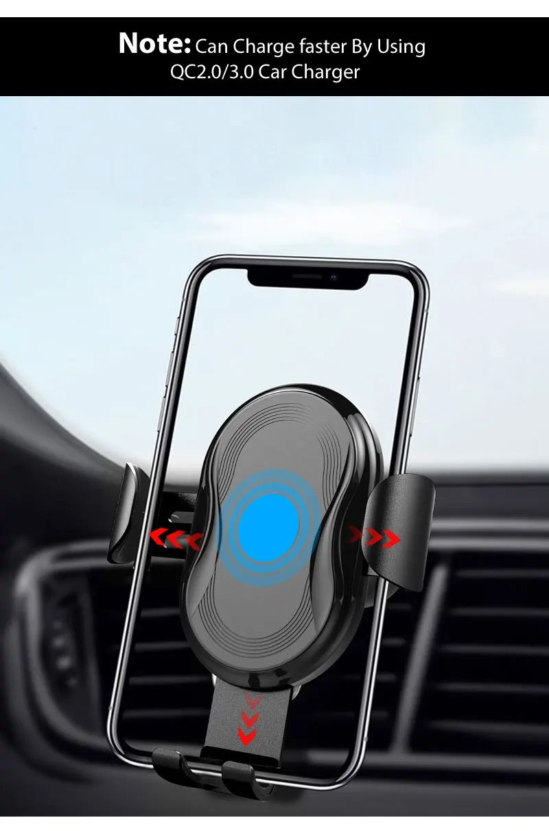 Hot New Mount Air Vent Gravity Phone holder with QI wireless charger for wireless mobile car charger product description.