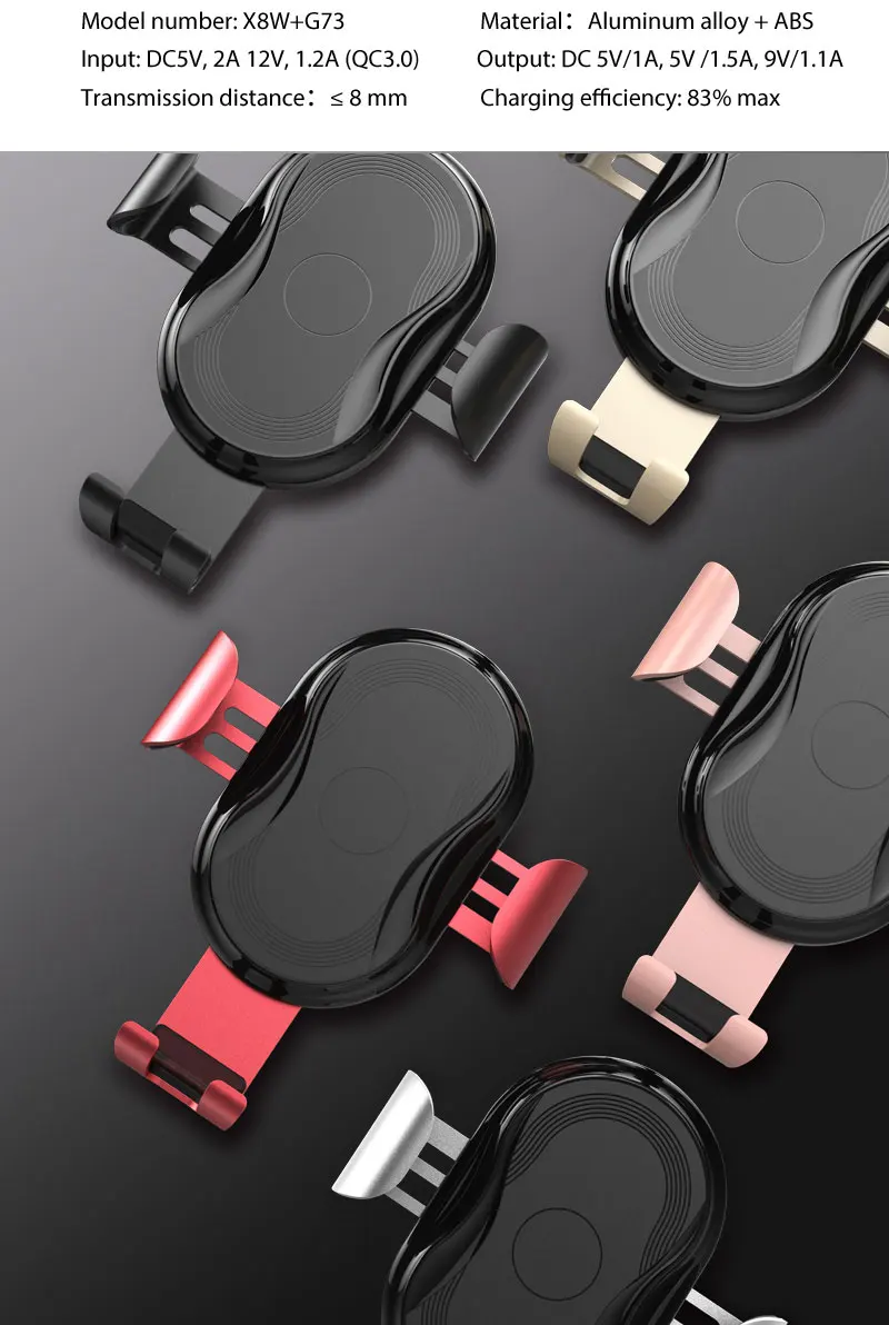 | Product name | In-car wireless charger + air vent mount | model name | G73+X8W |