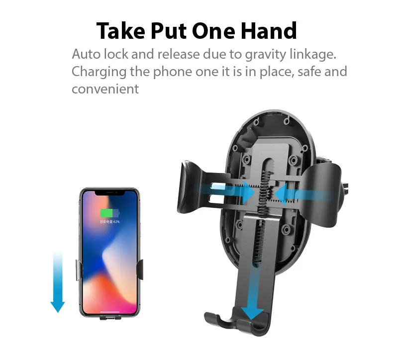Hot New Mount Air Vent Gravity Phone holder with QI wireless charger for wireless mobile car charger product feature.