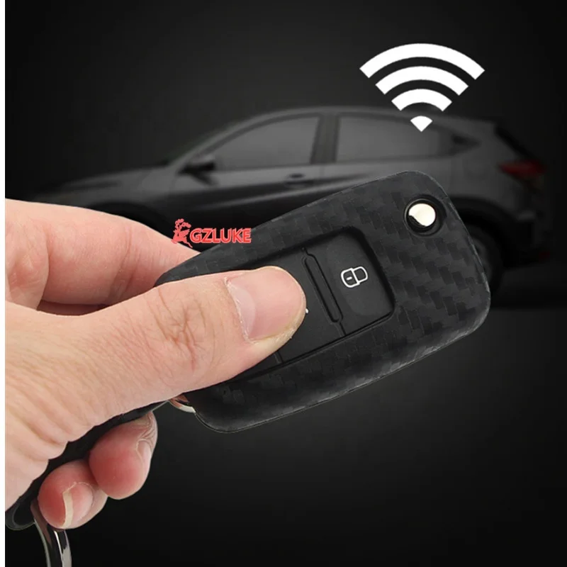 Black Soft Carbon fiber Look Car Key Case Cover FOB Protection Fit For VW Golf 4 5 6 Bora Jetta POLO Passat B5 B6 Skoda Superb