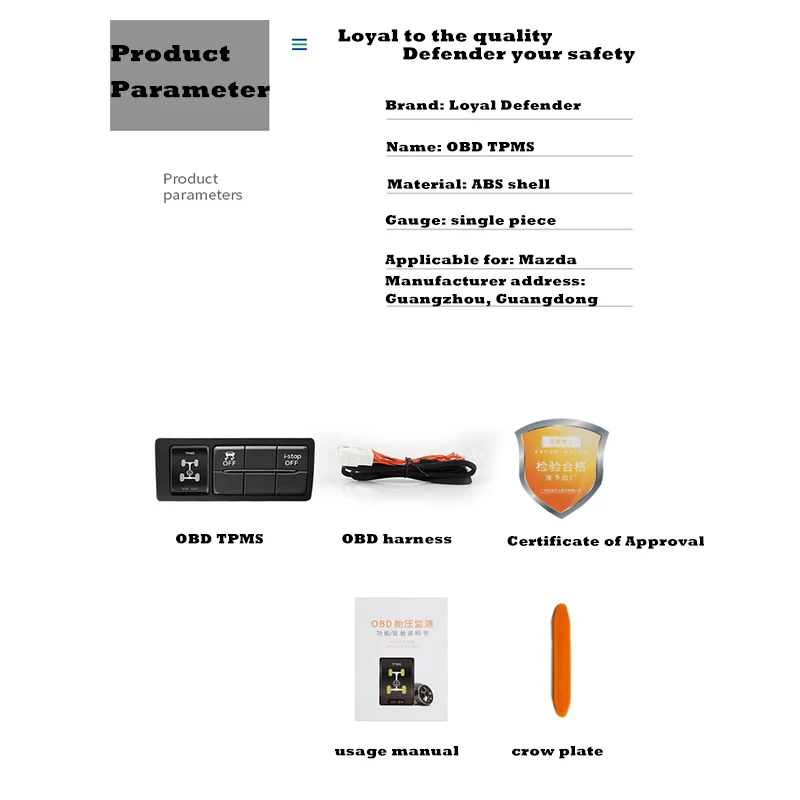 Loyal Defender Mazda Atenza CX4 CX5 Axela OBD TPMS tire pressure monitoring system real-time intelligent monitoring OBD sensor free auto security alarm system car modification