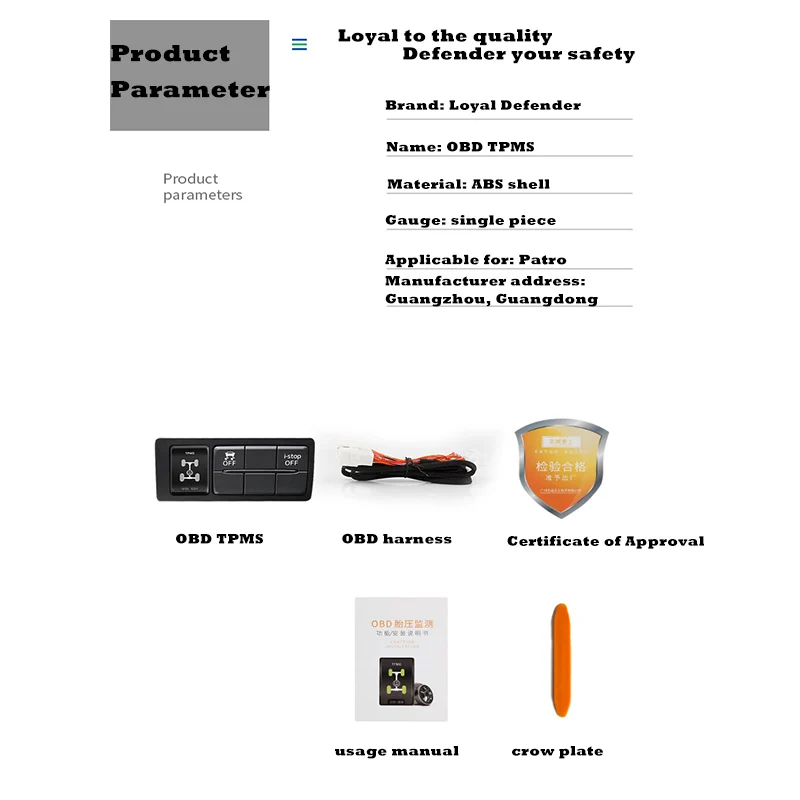 Loyal Defender NissanPatro OBD TPMS tire pressure monitoring system real-time intelligent monitoring OBD sensor free auto security alarm system car modification
