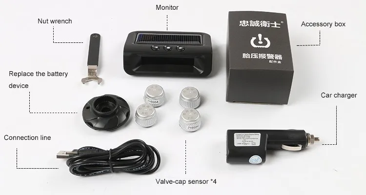 2.TPMS-1 solar tpms can support 4 tires vehicle.
