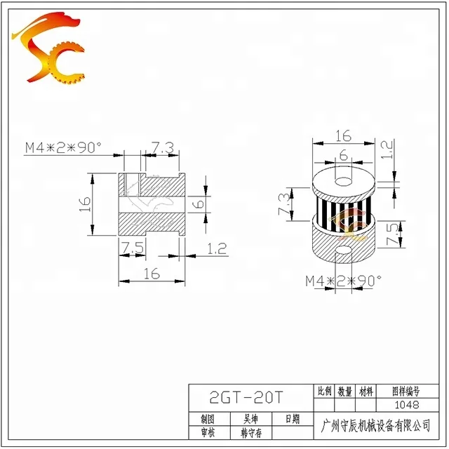 Your location:Home > Guangzhou Shouchen Mechanical Equipment Limited Company > 1048#CNC Parts GT2/2M Synchronous timing 20 teeth bore 6mm belt width 6mm Aluminum Alloy small timing belts and pulleys
