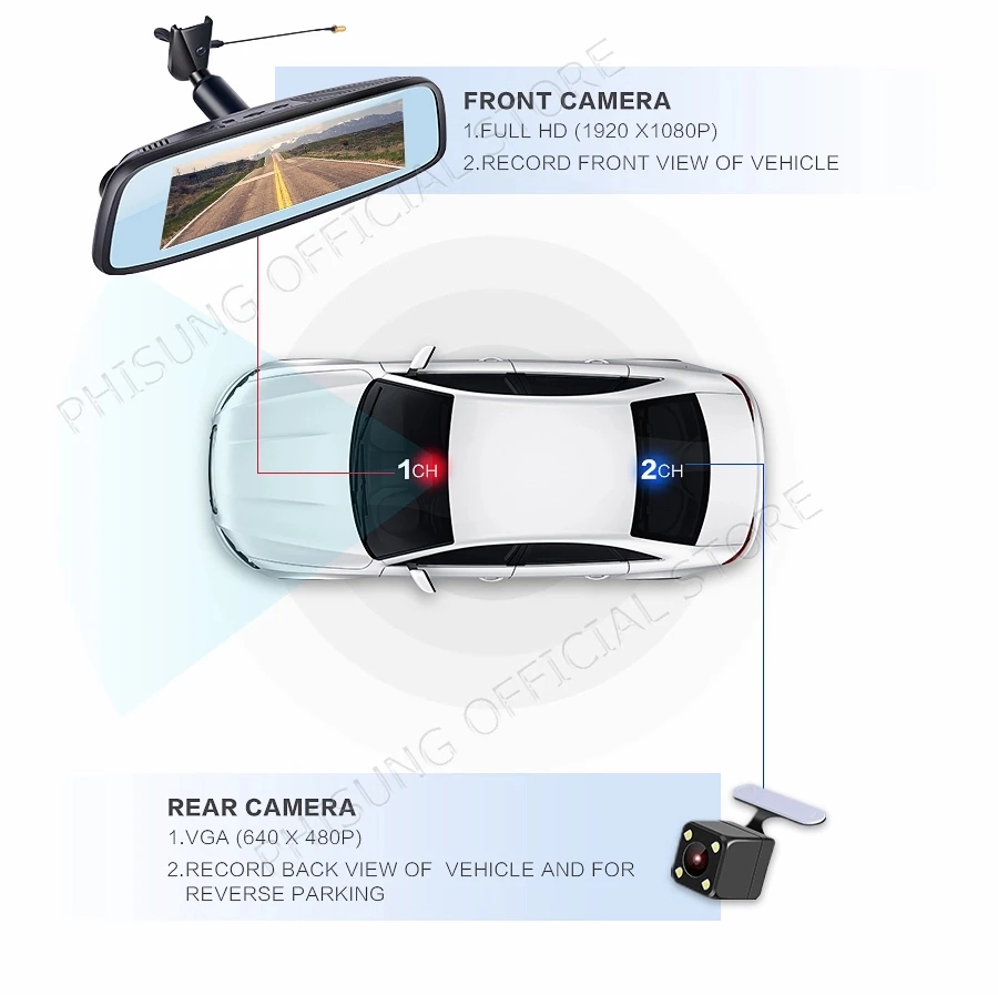 With our Phisung E09 smart mirror dvr, it will be completely replace your original rearview mirror.