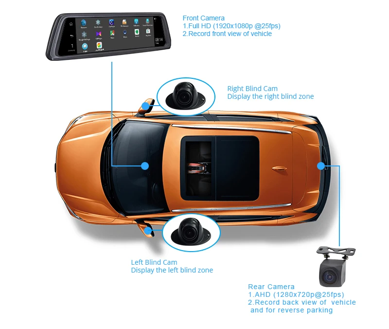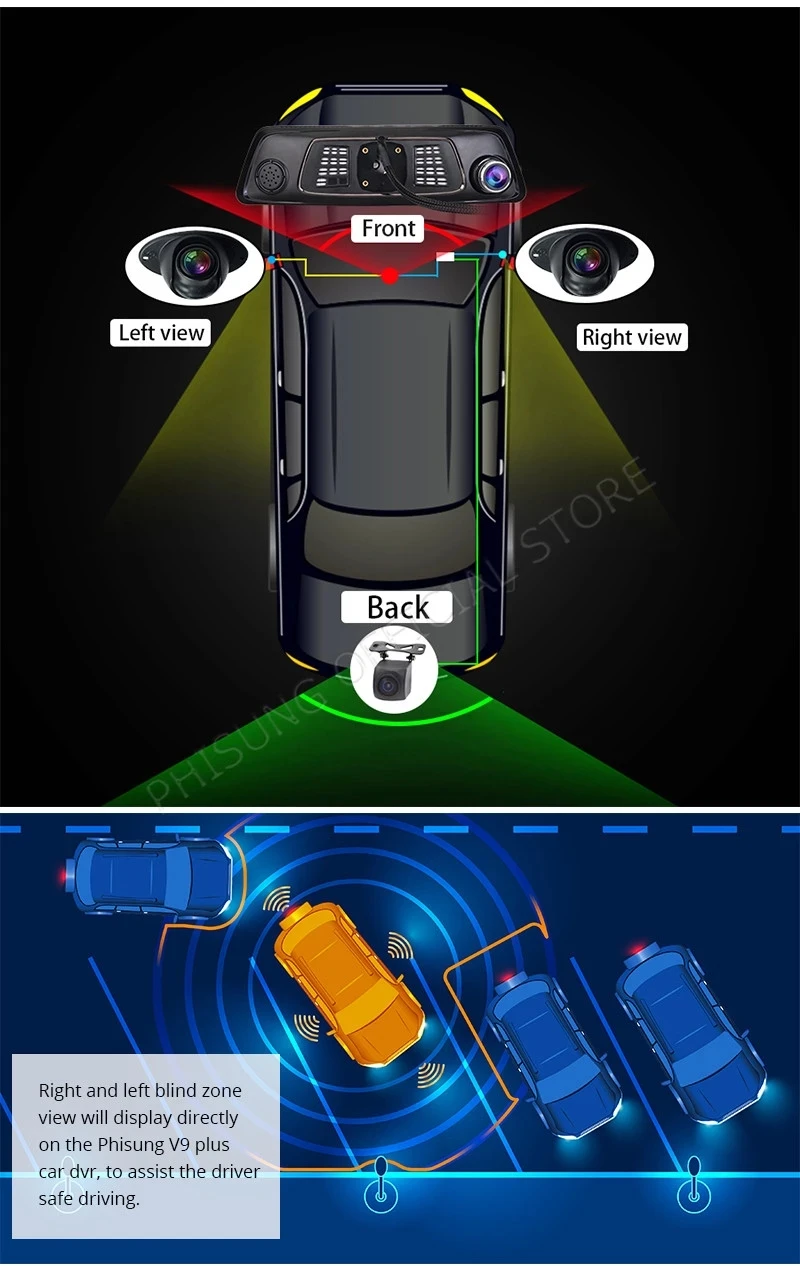 Camlvie V9 plus is the newest item in our factory, it is with 4 cams, one back camera, and two side camera,