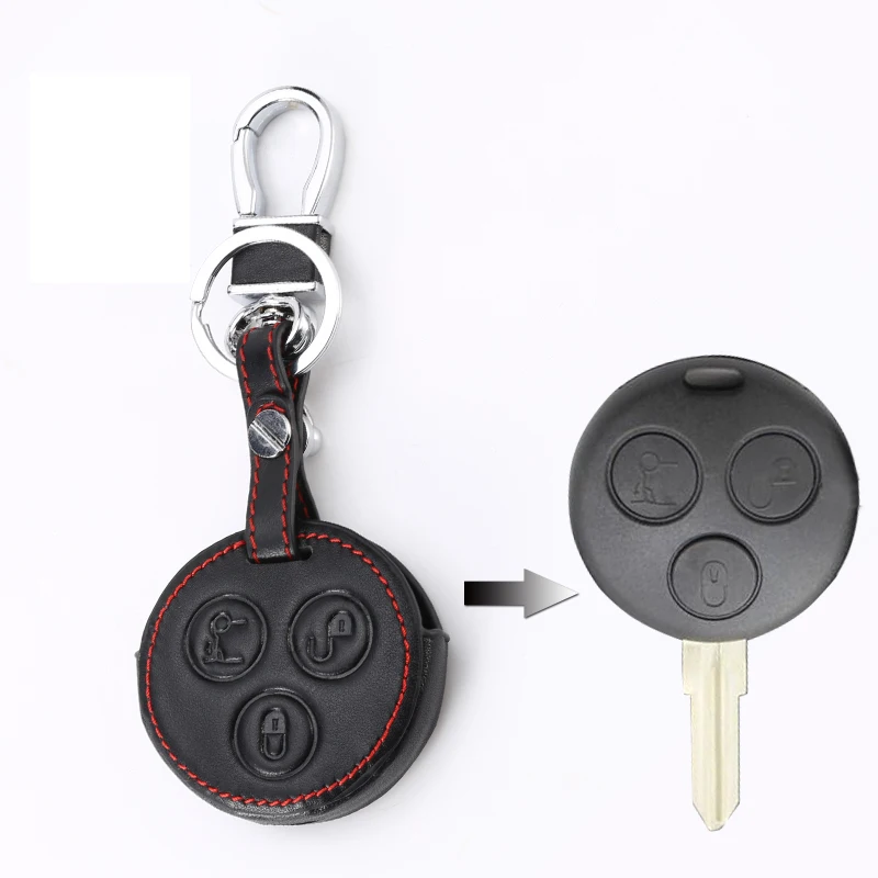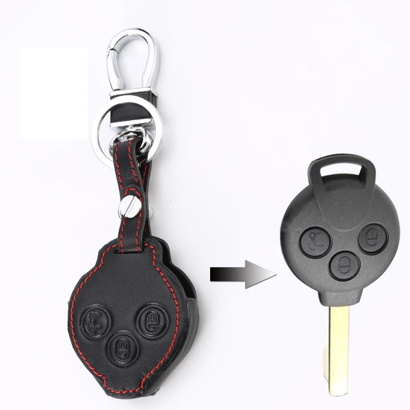 Leather smart key case holder protective cover fob For Mercedes Benz Smart Fortwo Forfour City Roadster car keychain wallet