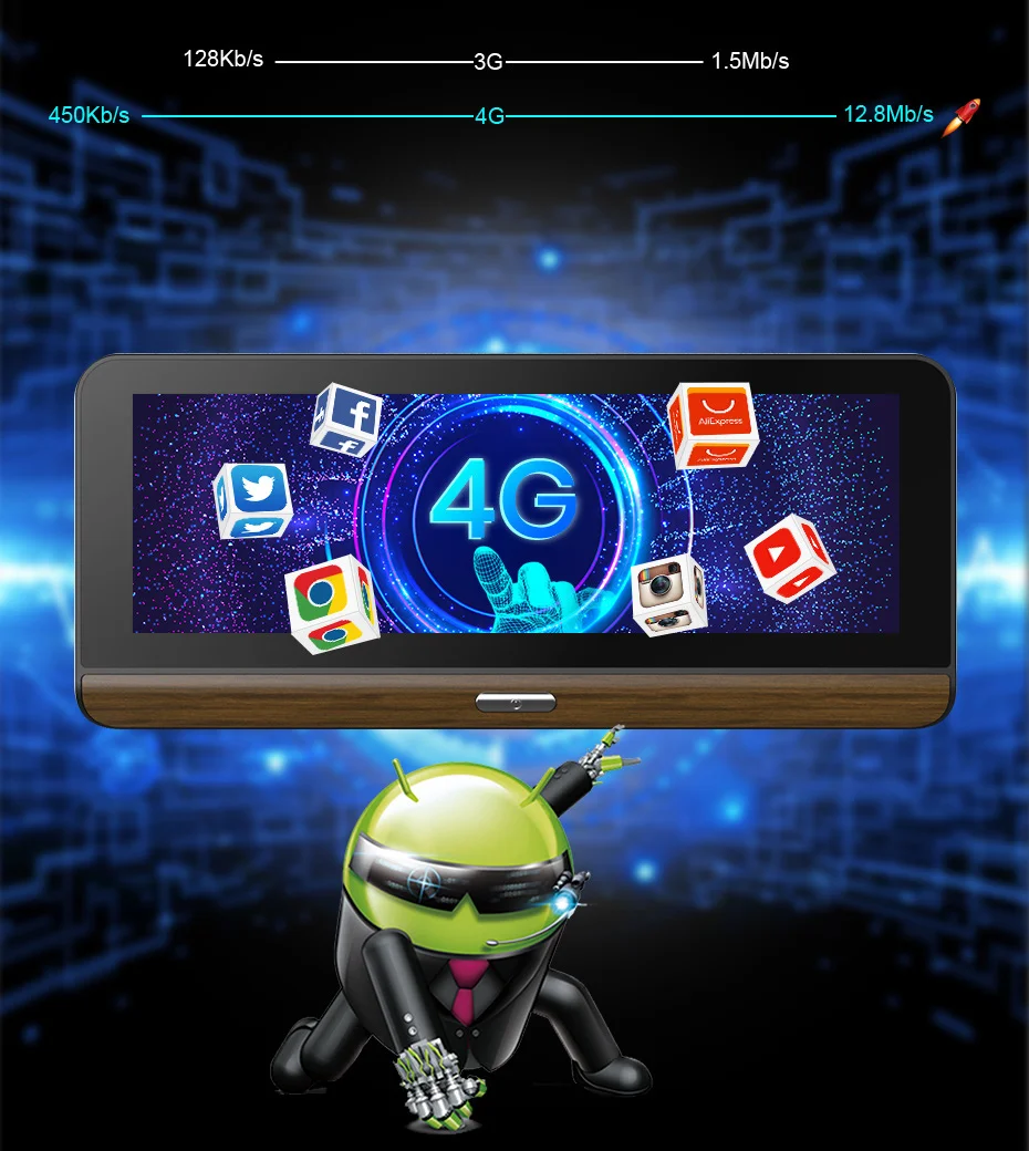 8" Full Touch FHD 4G Android Dual Lens Car Camera DVR Rearview Mirror Monitor for Car Auto Video Registrar Navigation Recorder