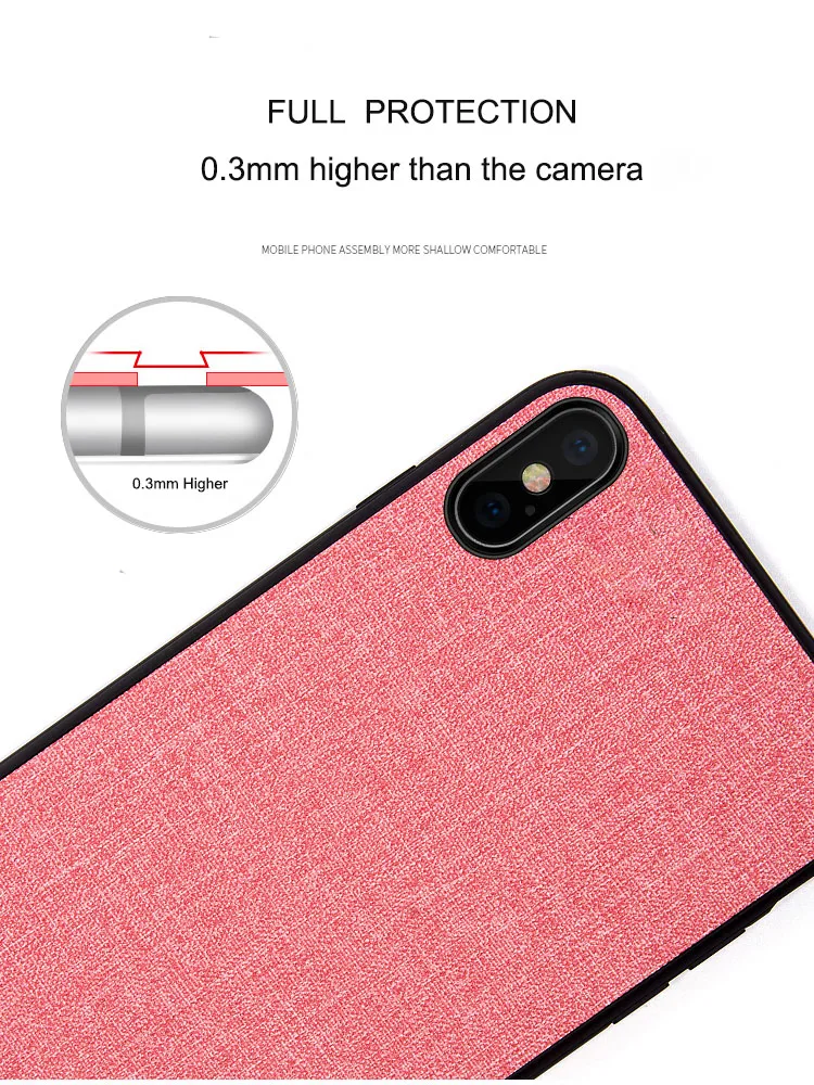 Anti-scratch shockproof TPU+fabric phone case for iPhone X/XR/XS with silicon soft edge