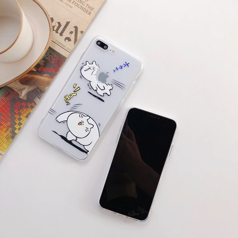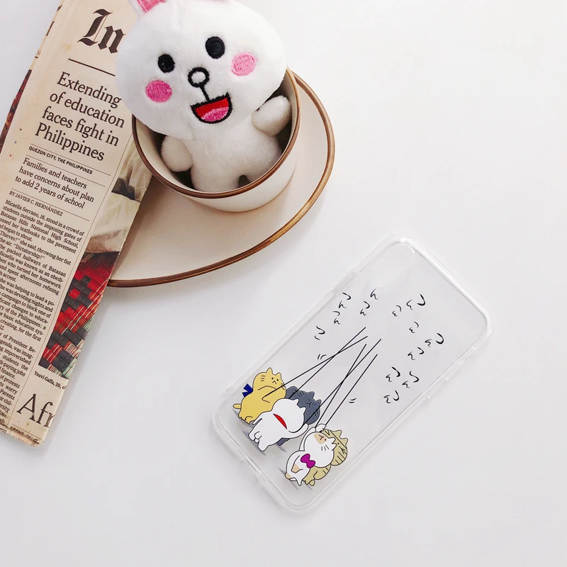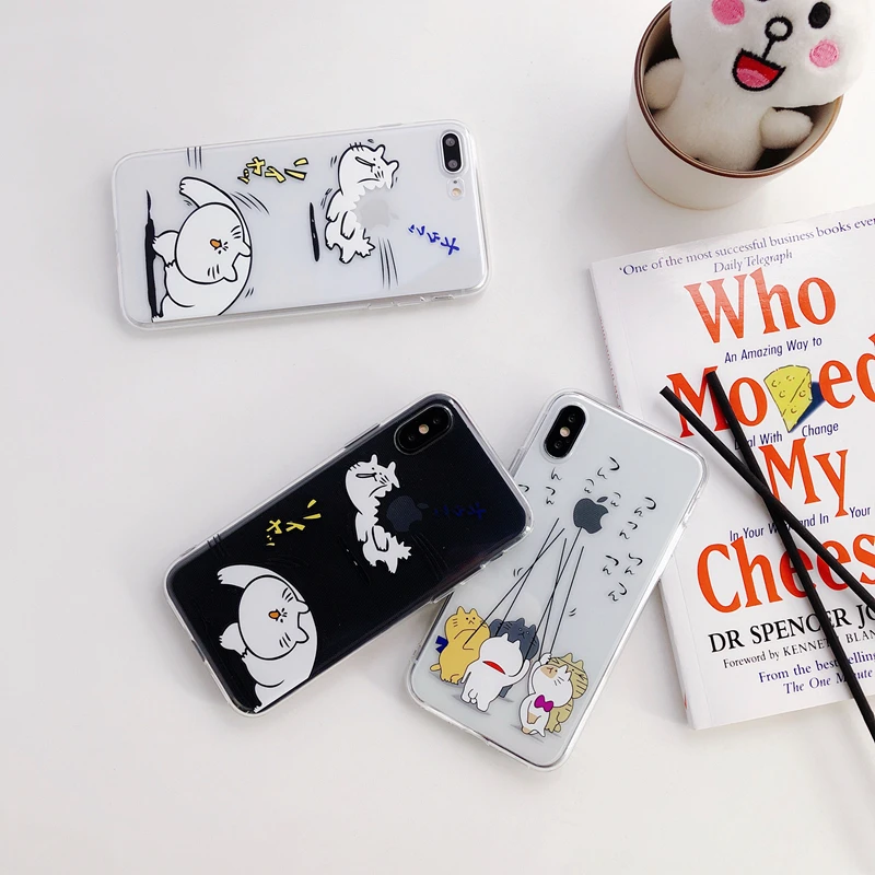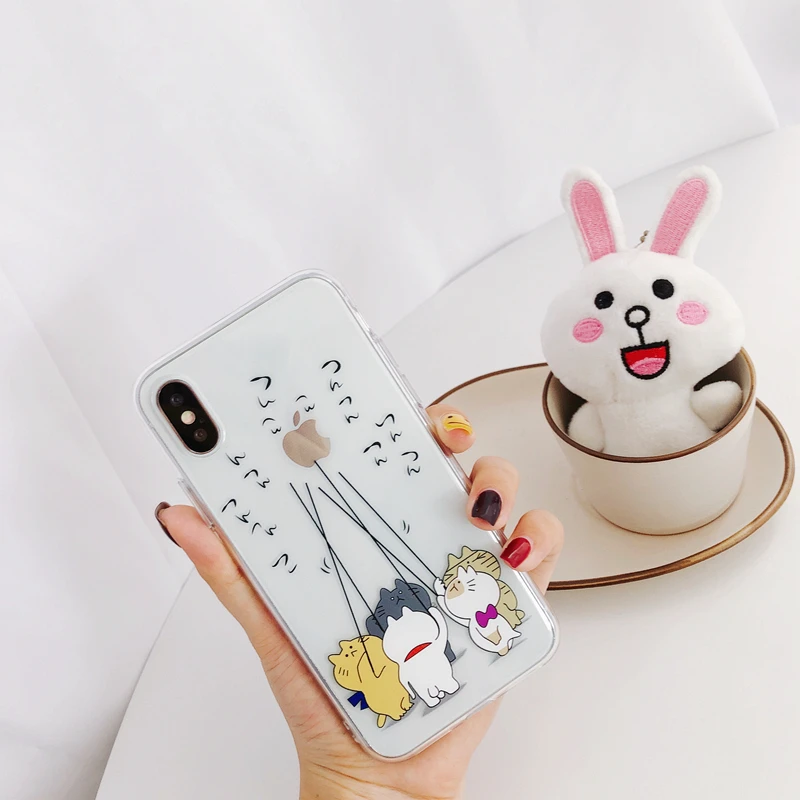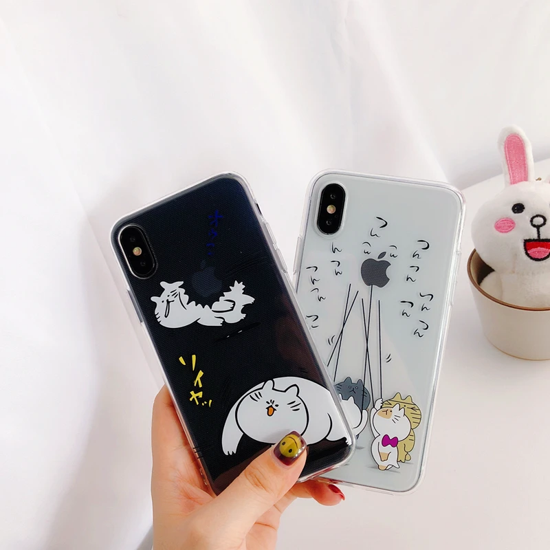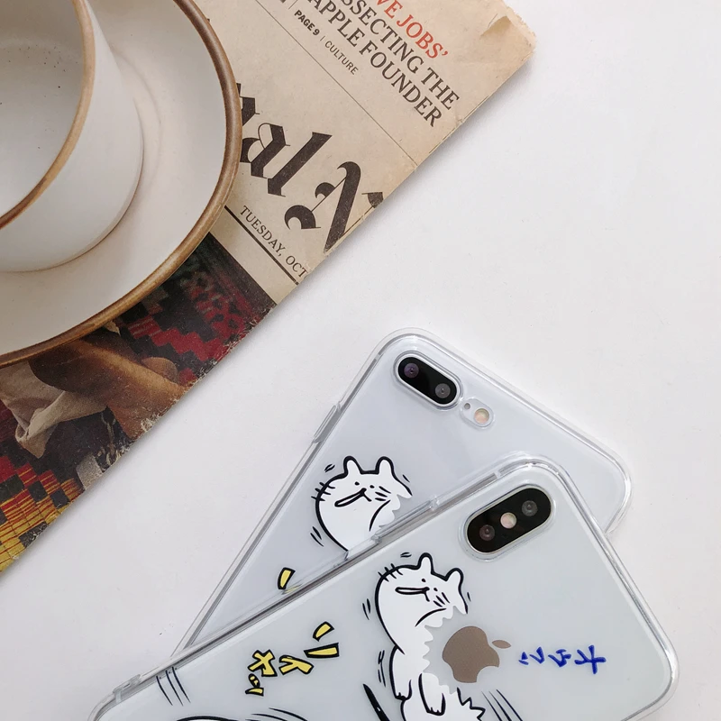 Antiskid shockproof waterproof transparent TPU cute funny Japanese cat phone case for iPhone 6/7/8/X
