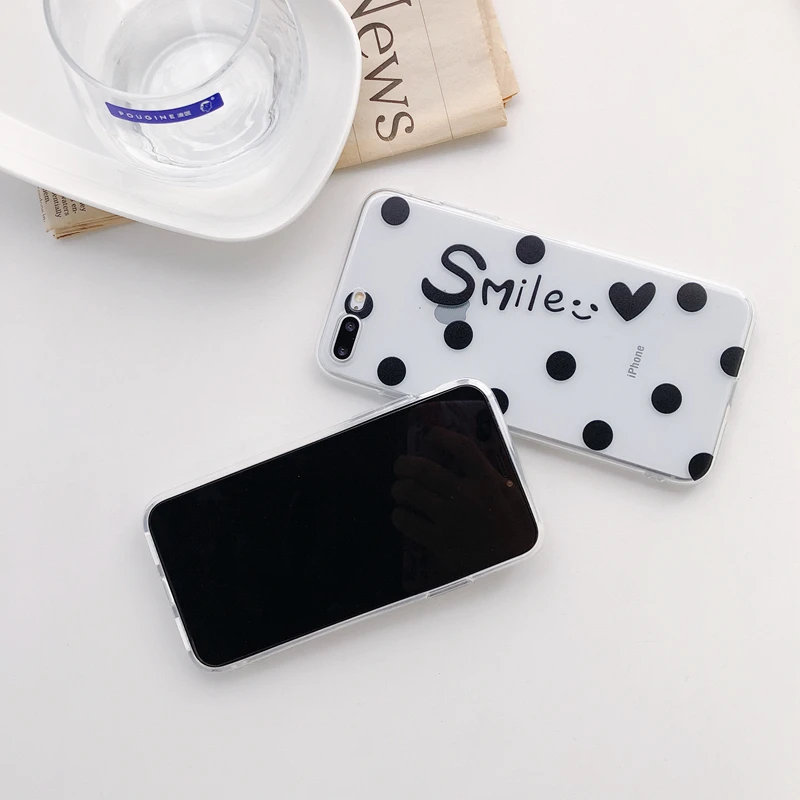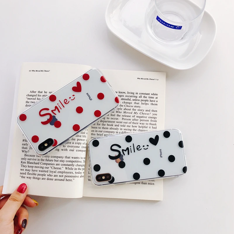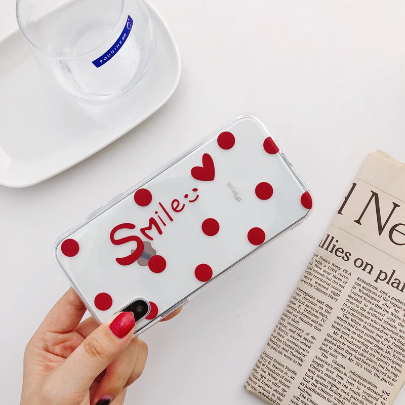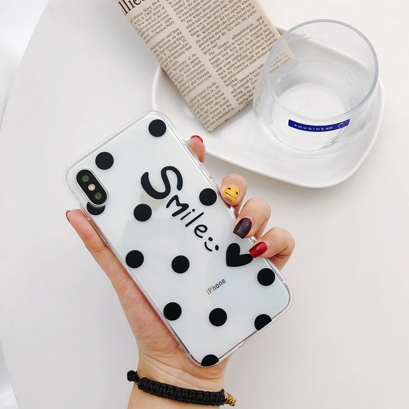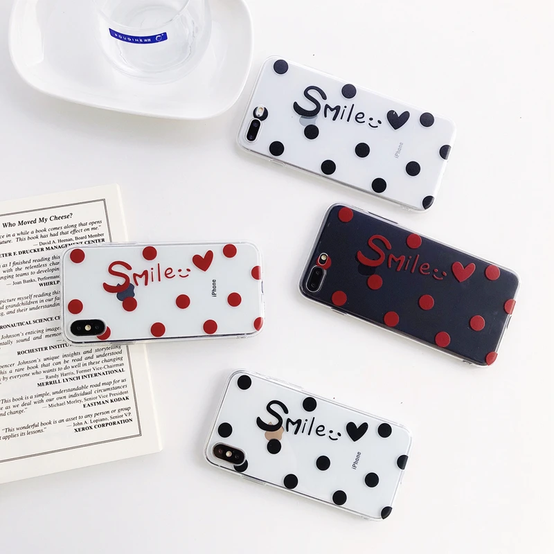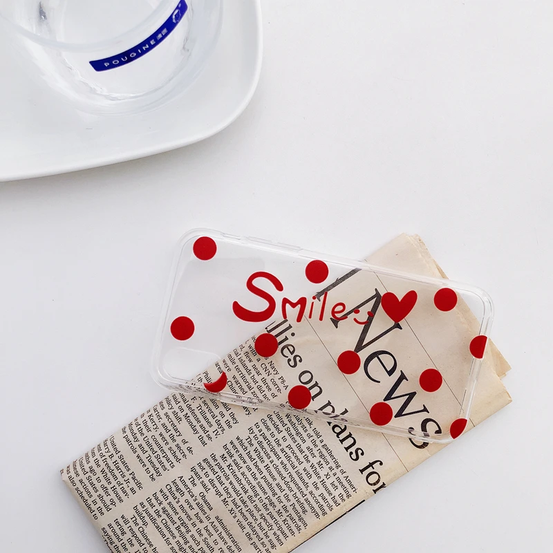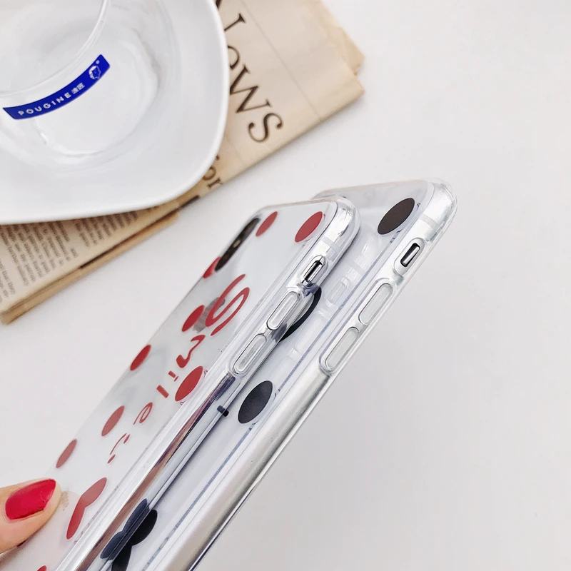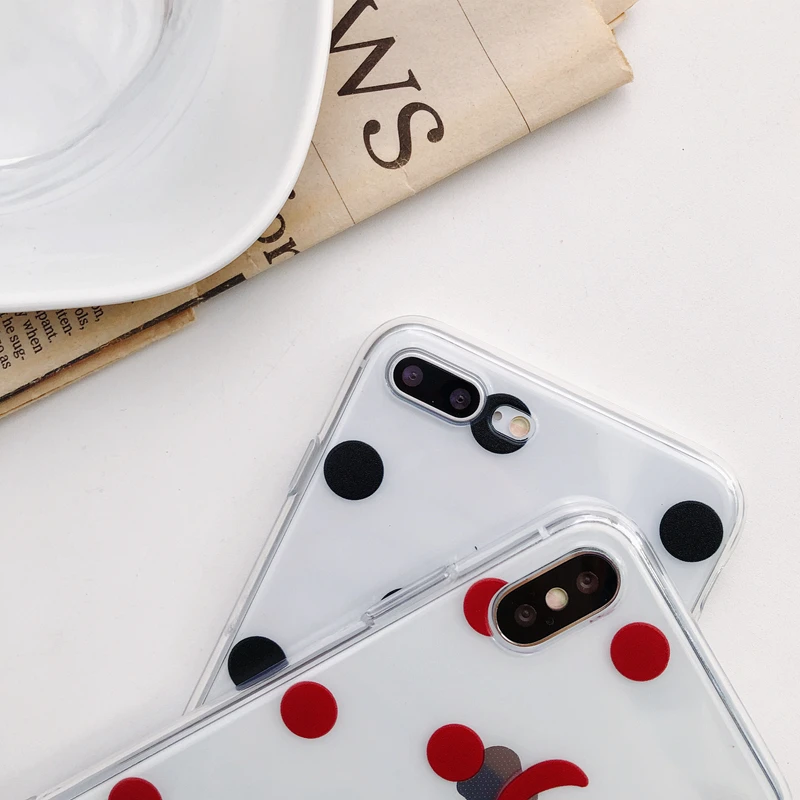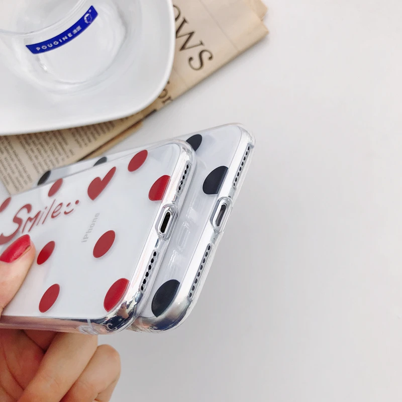Antiskid shockproof waterproof transparent TPU red & black dots cute girly phone case for iPhone 6/7/8/X