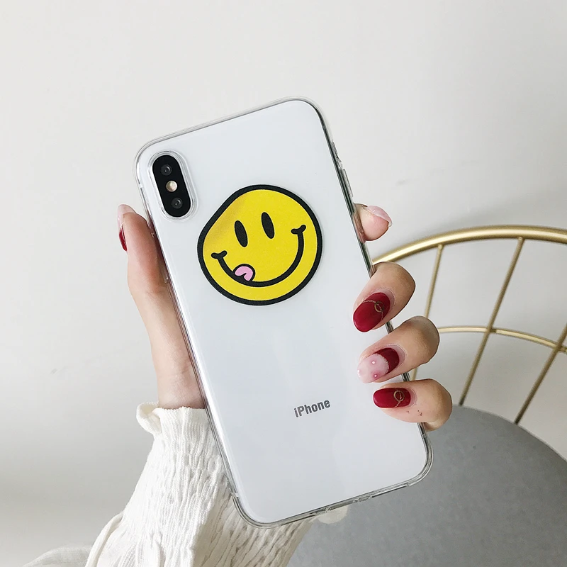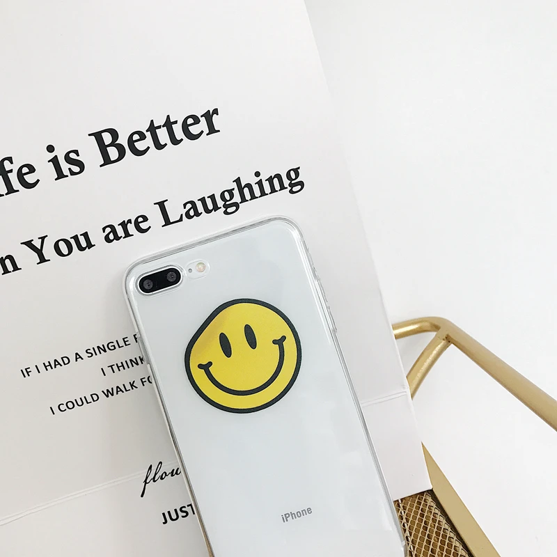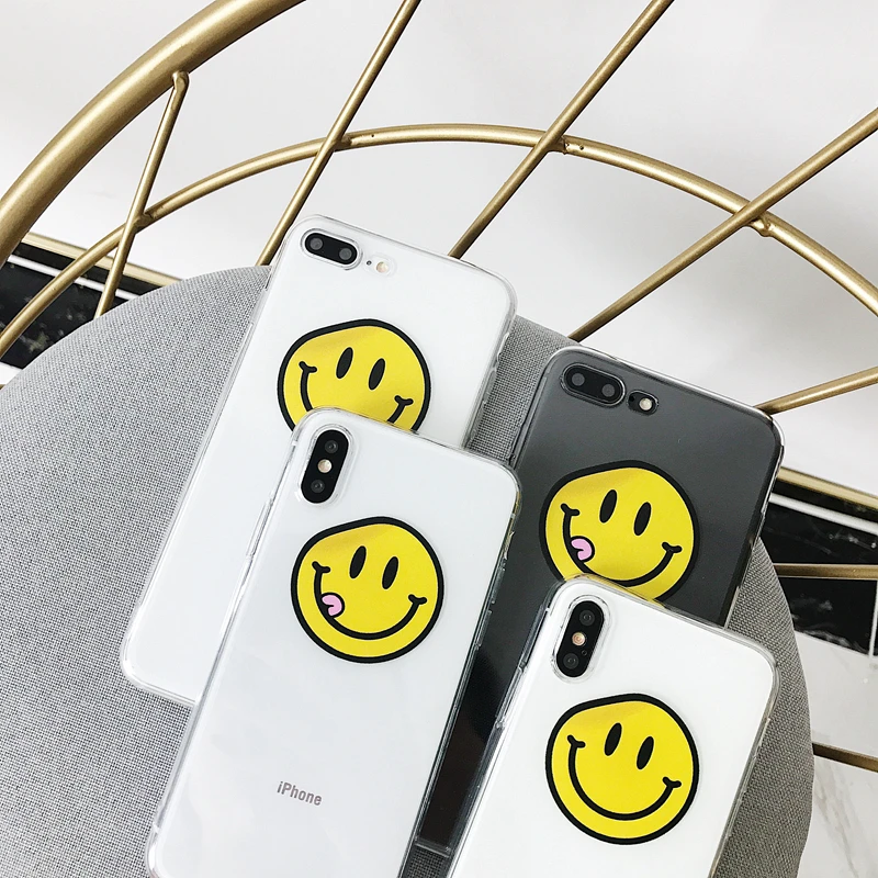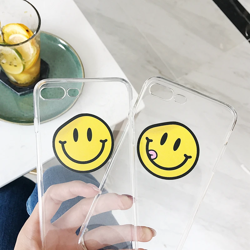 Antishock waterproof soft transparent TPU cute smiling face phone case for iPhone 6/7/8/X