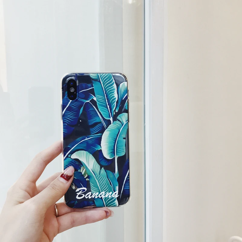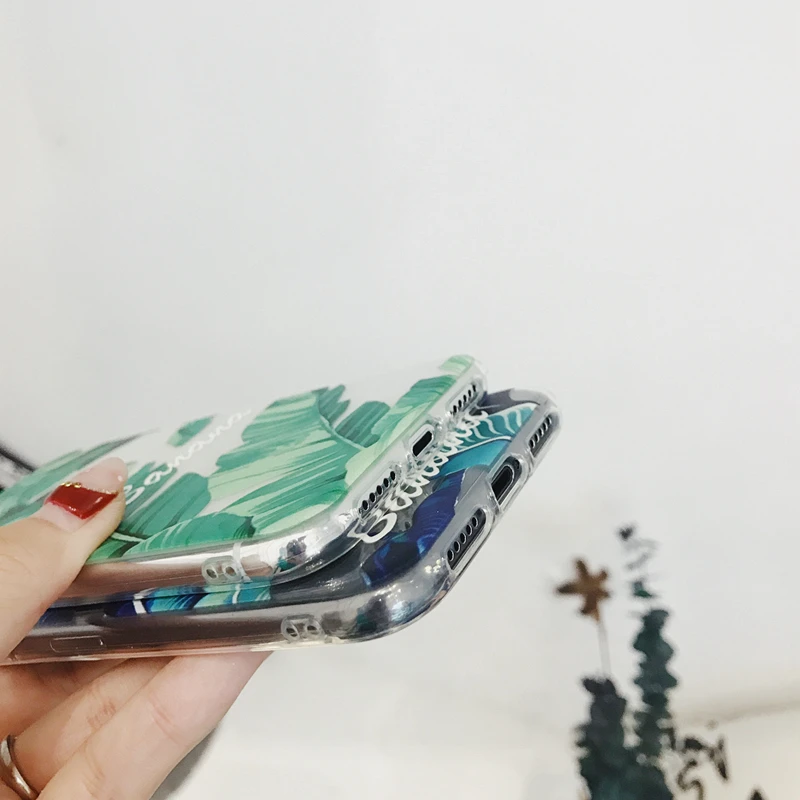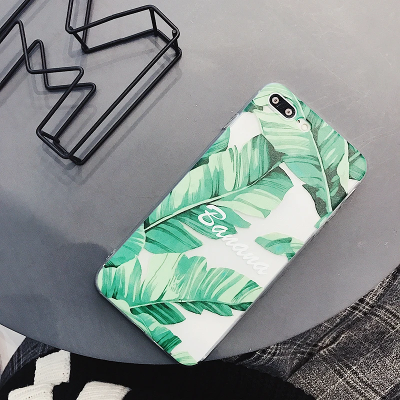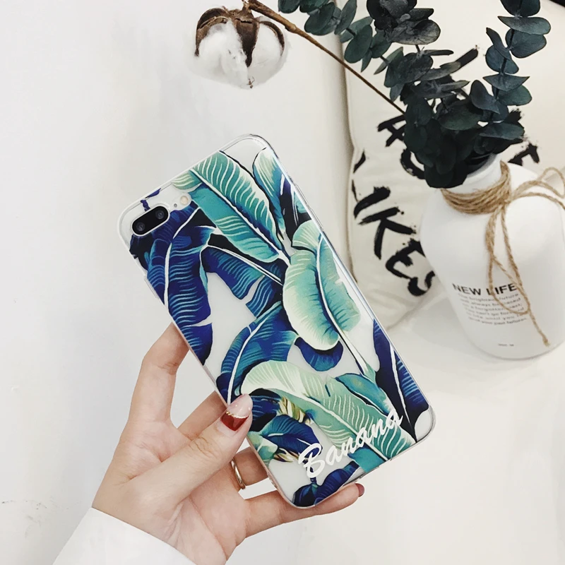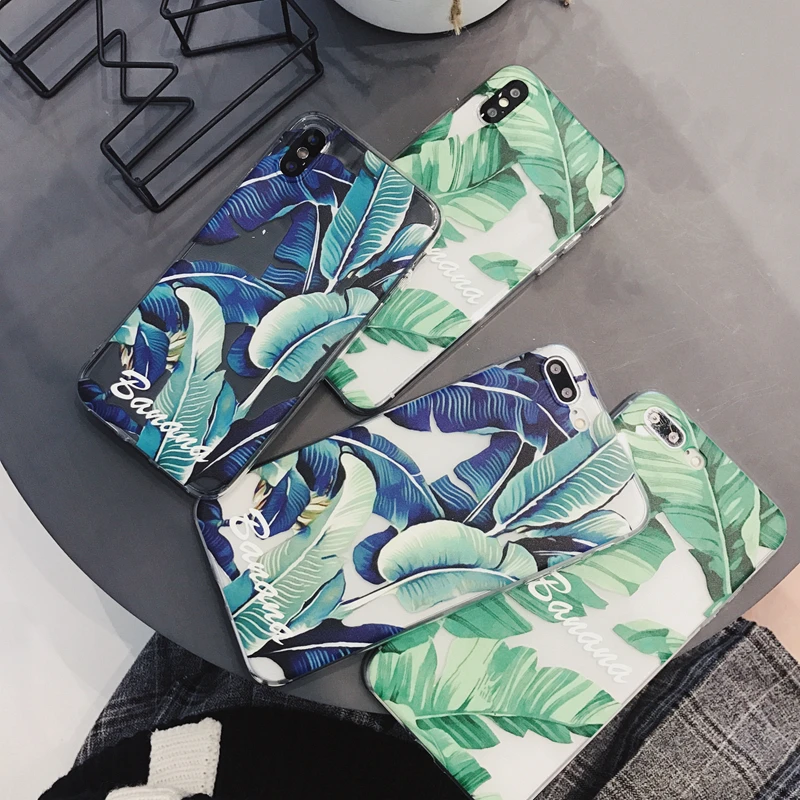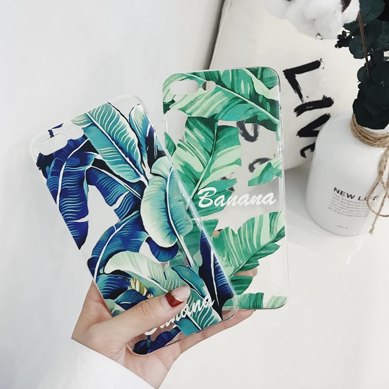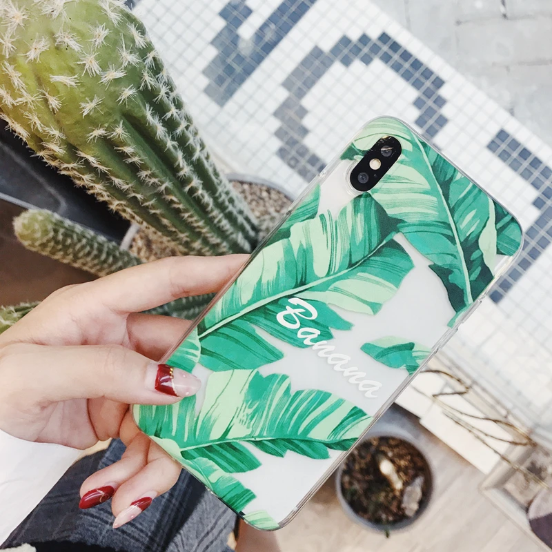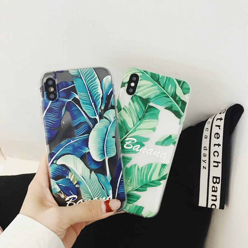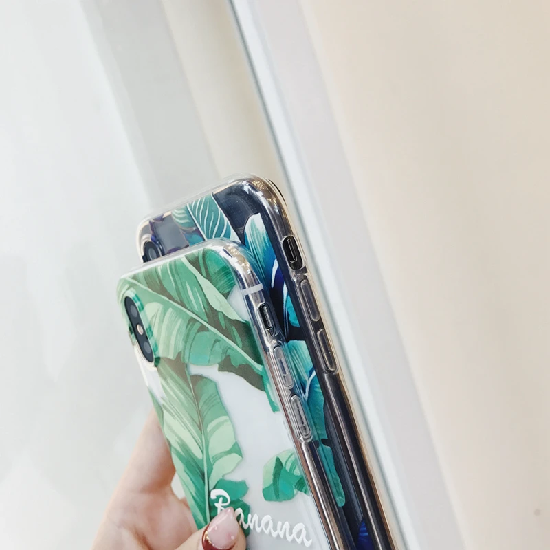 Waterproof antishock transparent soft TPU banana leaves phone case for iPhone 6/7/8/X