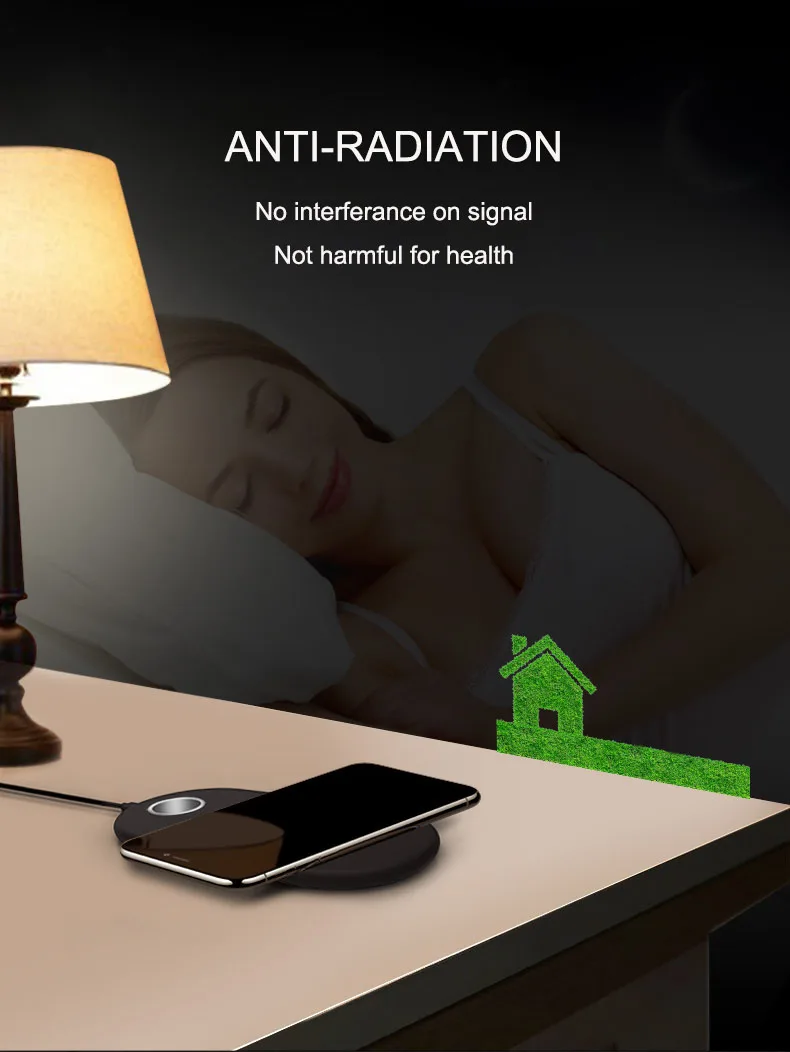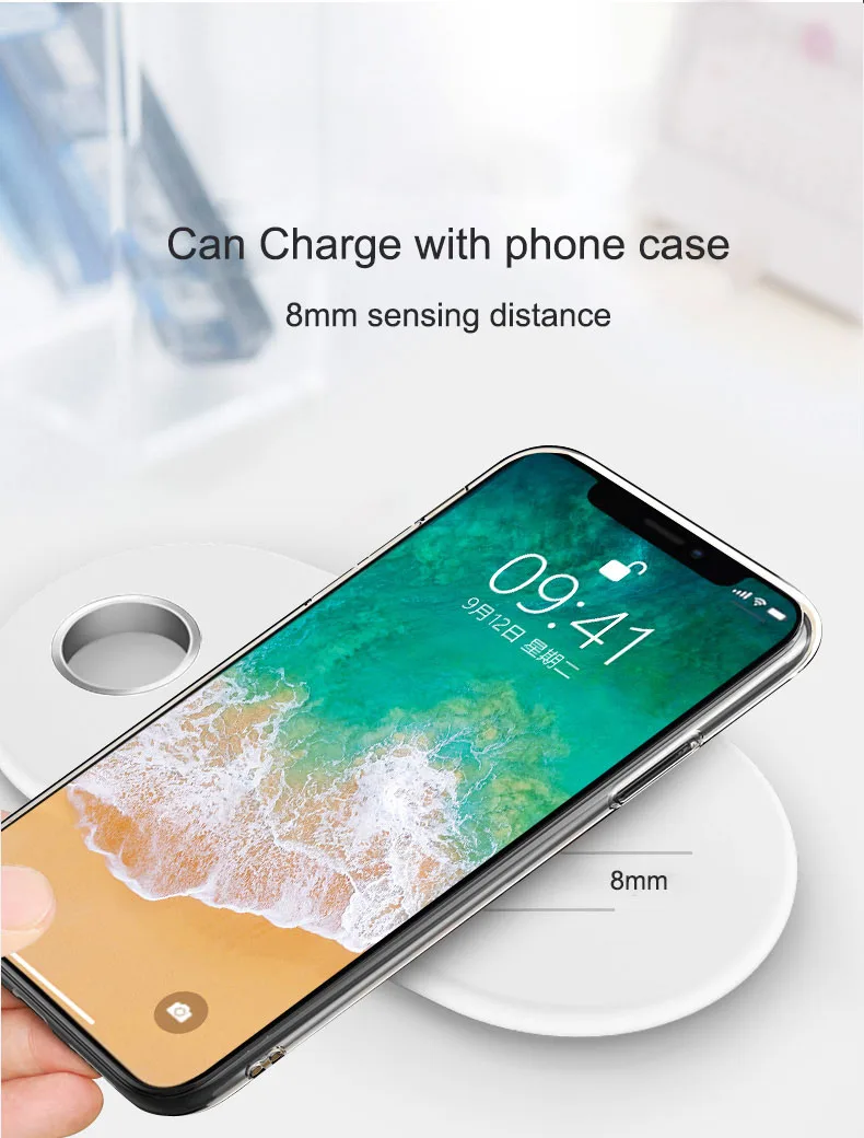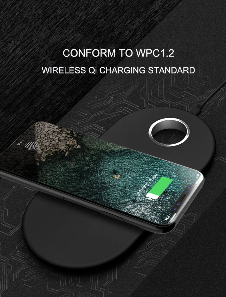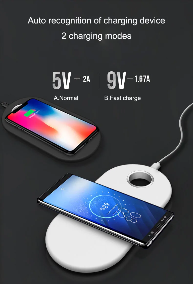 Qi standard 2 in 1 5V/9V wireless charging pad charger for phone and watch with Qi certification