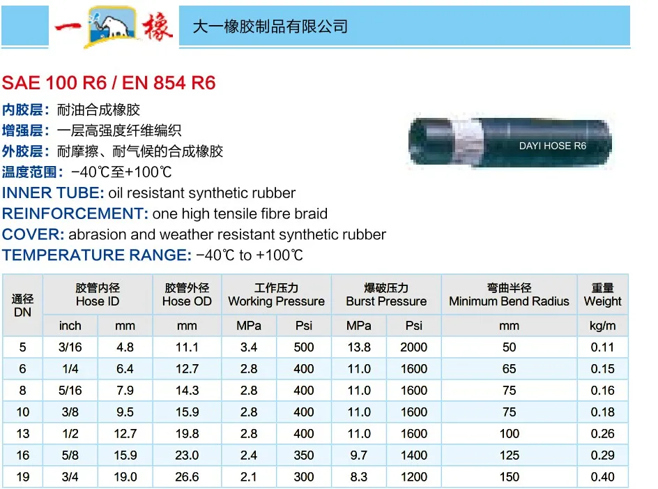 SAE100R6 hydraulic oil hose with cloth surface or smooth surface good quality and reasonable prices
