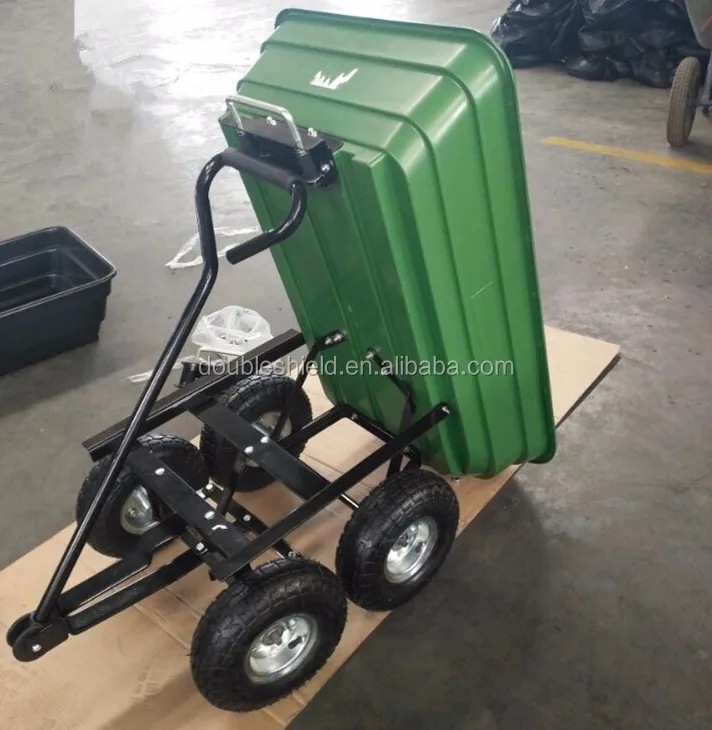 four wheels heavy duty poly garden yard dumping wagon cart wheelbarrow