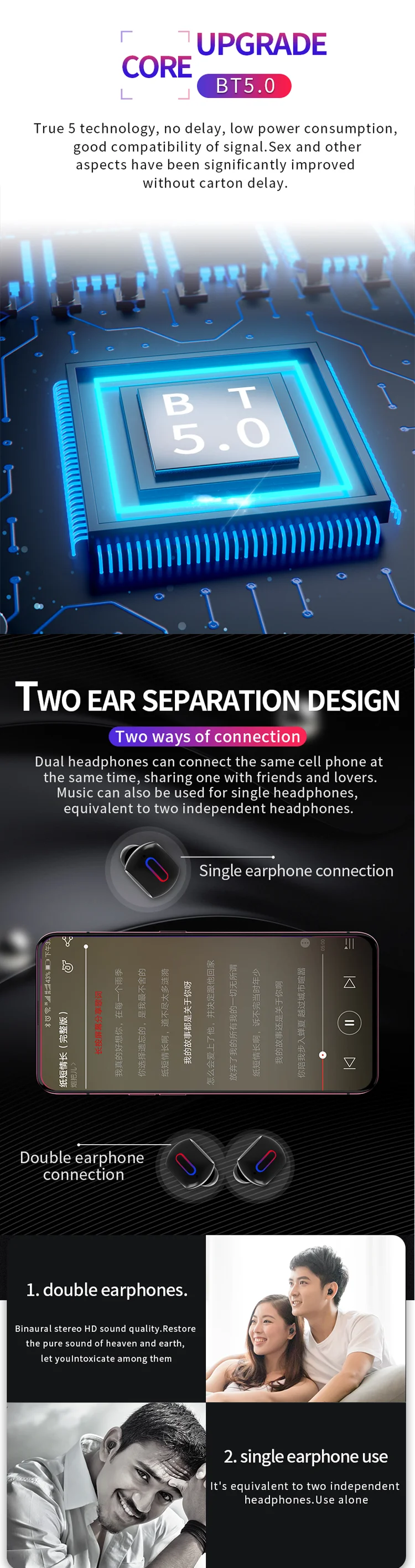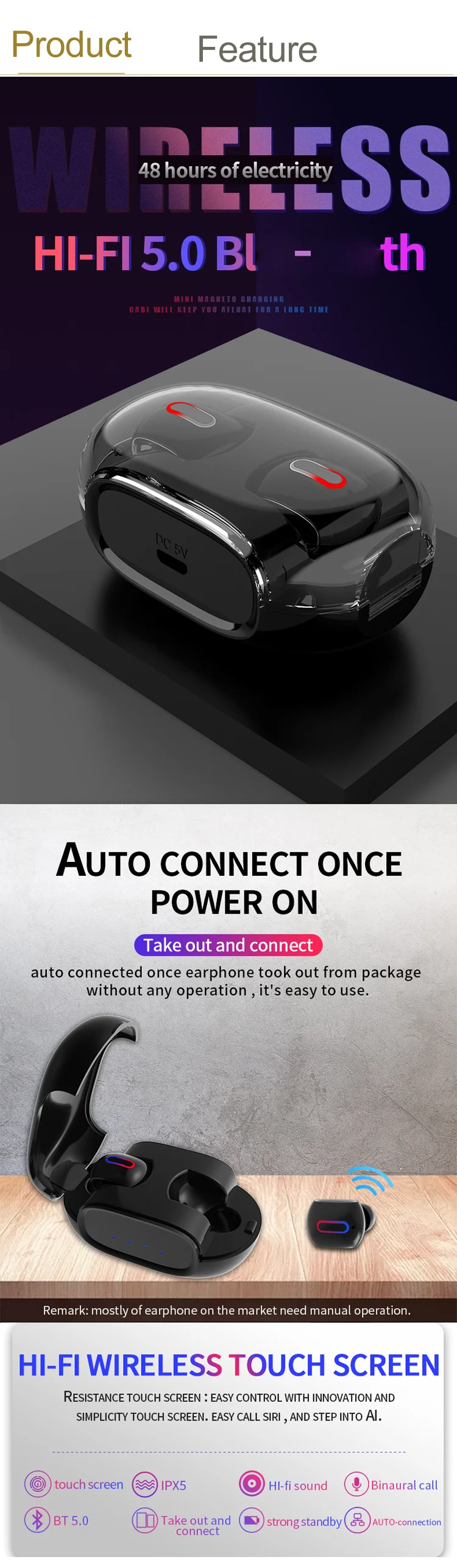 2019 G2 smart sport headphone connect phone by BT5.0 technology TWS high sound quality earphone