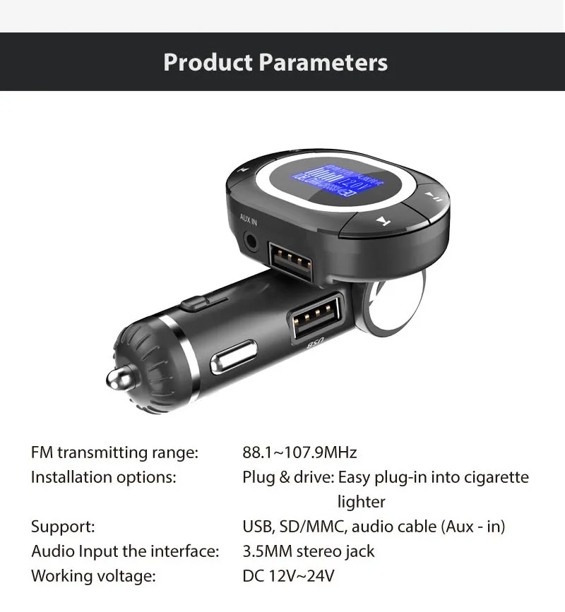Your location:Home > Shenzhen Gaoyi Electronic Co., Ltd. > Universal Car Wireless Bluetooth FM Transmitter Car Charger 2.4A With MP3 Player Big LED Display Car Kit Nulaxy