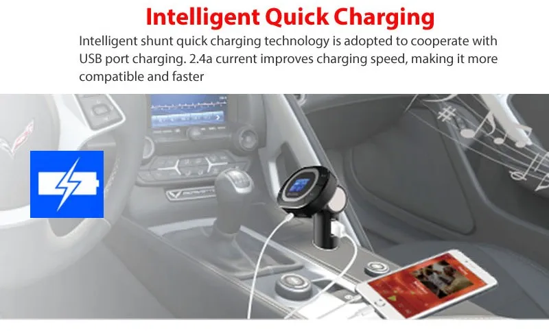 Universal Car Wireless Bluetooth FM Transmitter Car Charger 2.4A With MP3 Player Big LED Display Car Kit Nulaxy