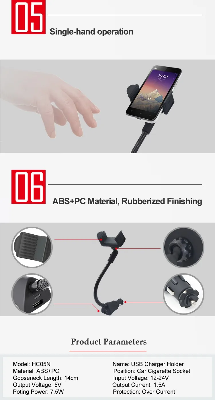 USP: Handsfree car holder with USB charger