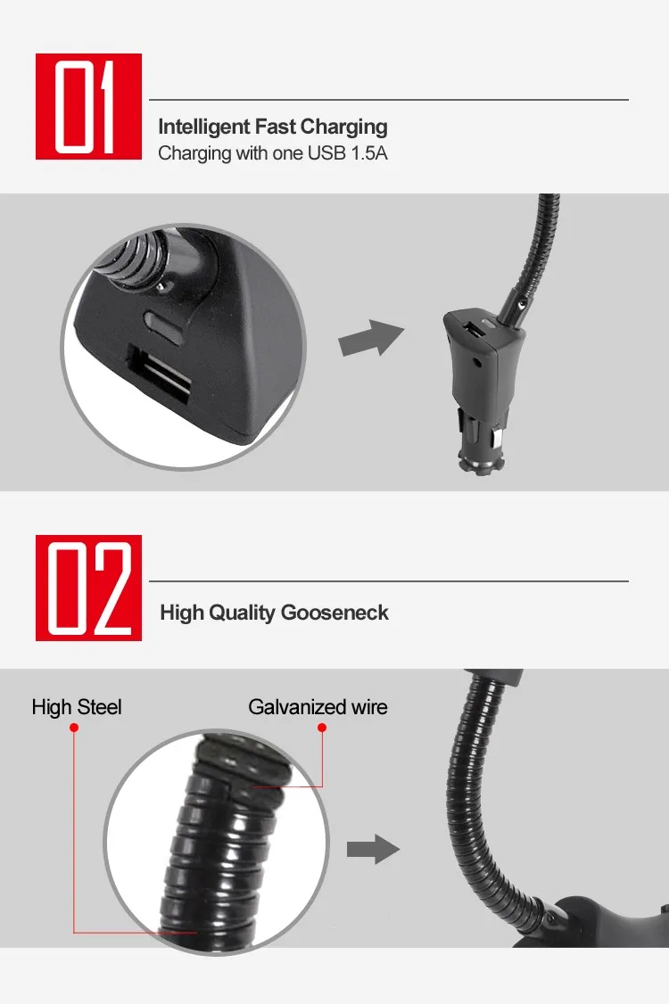 USP: Handsfree car holder with USB charger, automatic