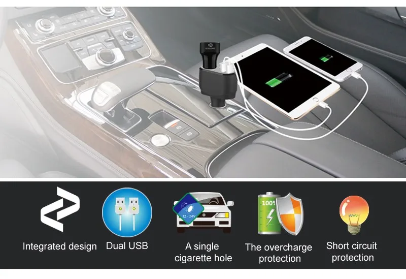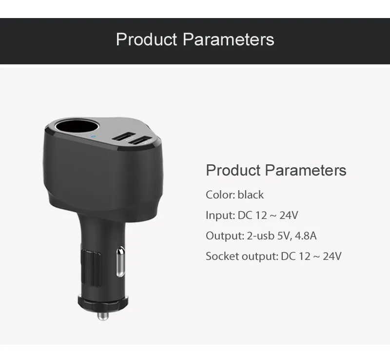 Input: 12-24V DC Output: 5V 2.4A*2(smart IC )