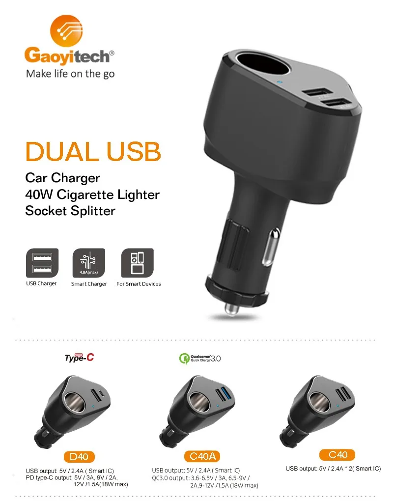 Your location:Home > Shenzhen Gaoyi Electronic Co., Ltd. > Trending 2 USB 4.8A Car Charger With 1 Car Socket Splitter Phone Charger Mobile Accessories