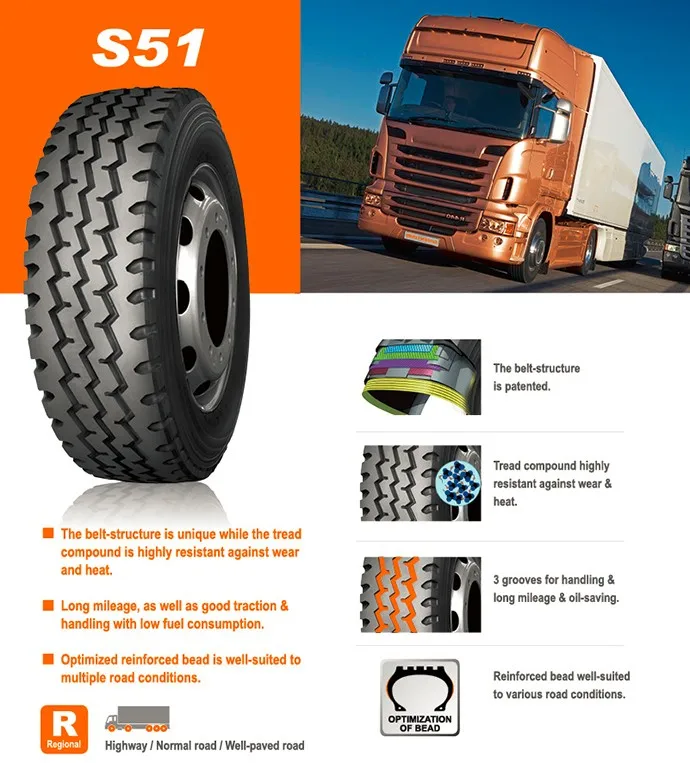 Top grade Cost efficient S51 long haul Truck Tire 315/80/22.5