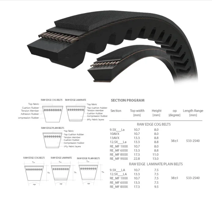 *The belts are tolerance stable, such that belts with the same section and length marking can be used immediately in matched sets.