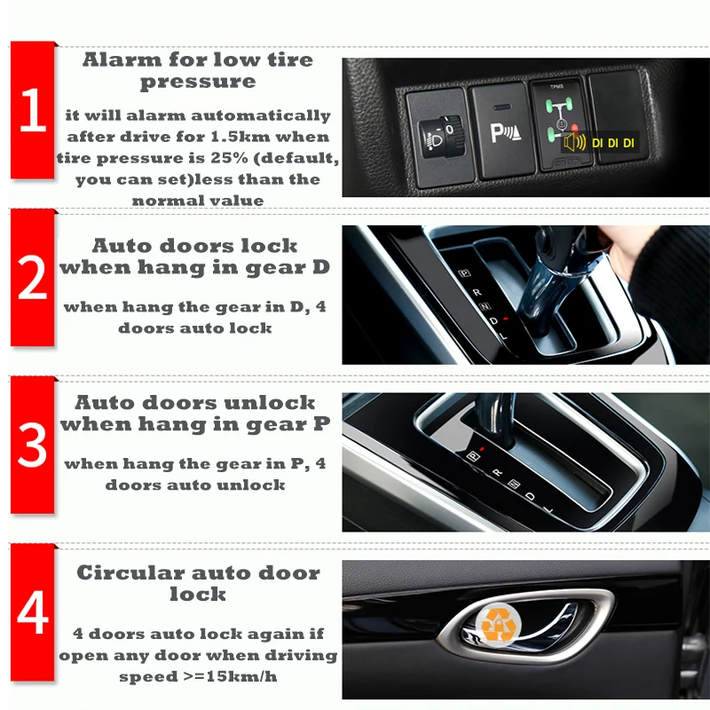 3. CAN-BUS technology, accurate and real-time intelligent monitoring; Original car blind hole display, no occupy other space; tempered glass display, clear and durable; No need battery, the power is supplied by cigar lighter