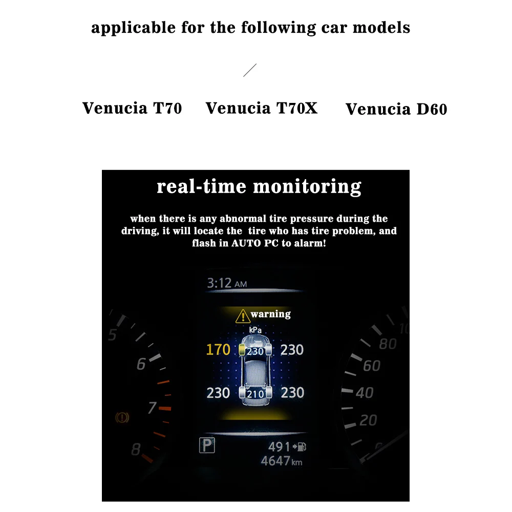 Loyal Defender Nissan new Venucia T70 T70X T90 D60 OBD TPMS tire pressure monitoring system real-time intelligent monitoring OBD sensor free auto security alarm system car modification