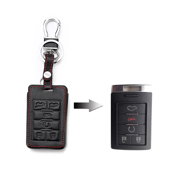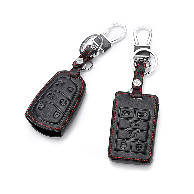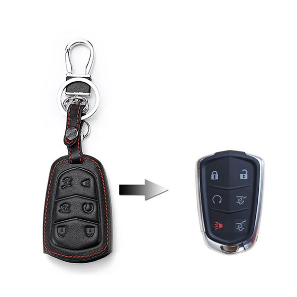 Leather remote key shell fob key cover for Cadillac Escalade 2015 smart key case 6 Buttons car styling