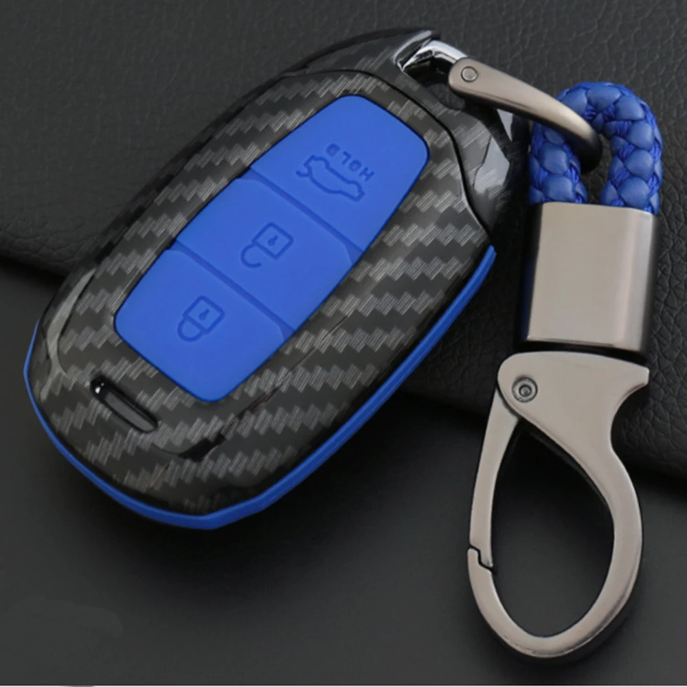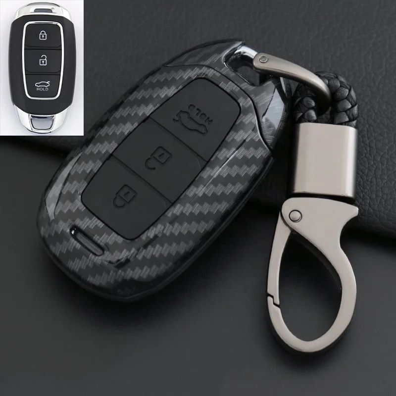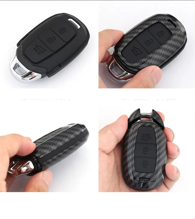 Carbon Silicone car key case keychain for Hyundai Kona 2017 i30 ix35 Solaris Azera ELANTRA GRANDEUR IG remote key cover holder