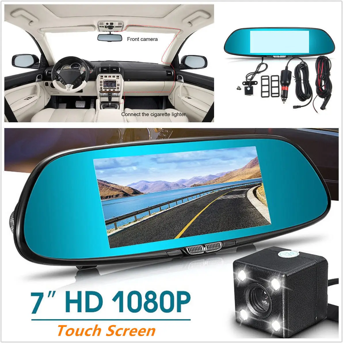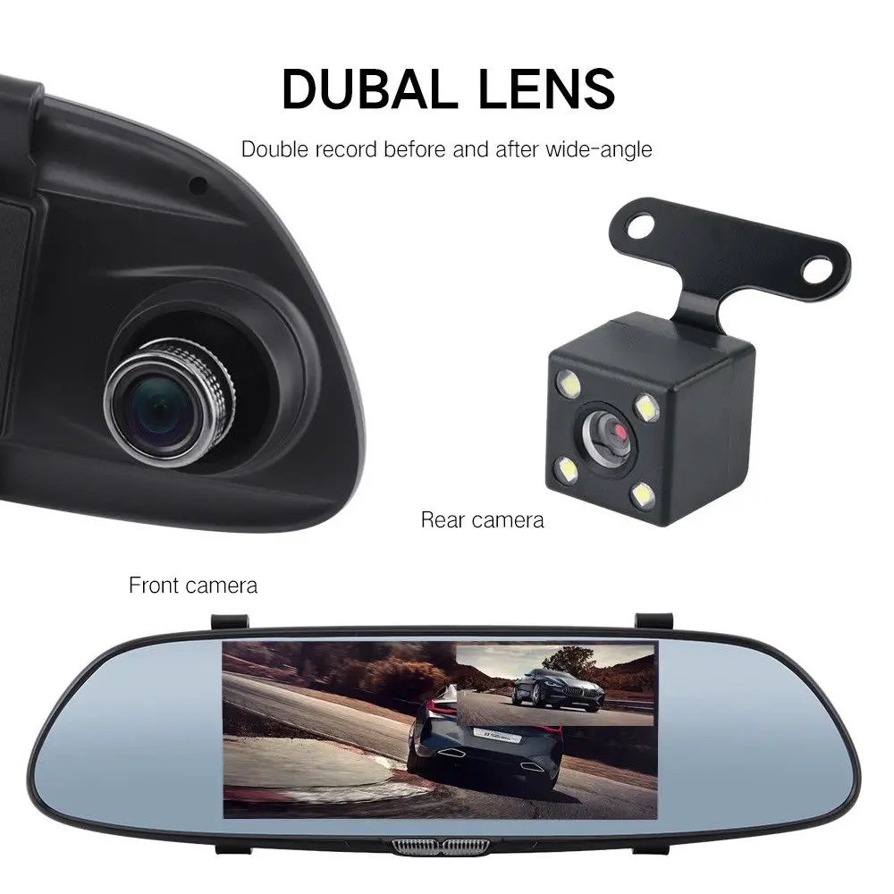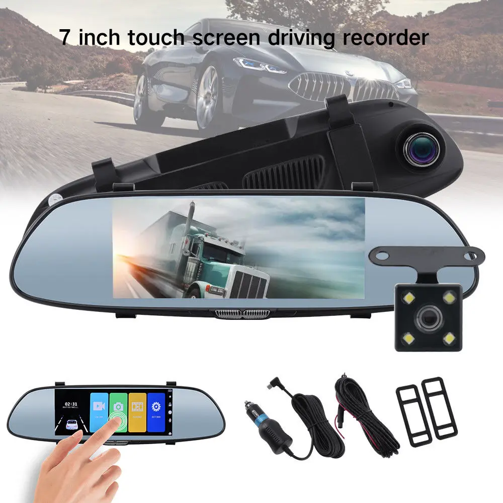 7 inch touch screen driving recorder HD1080p IP65 Car Dvr Rearview Mirror Camera 170 Degree Car DVR with Dual Lens