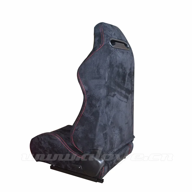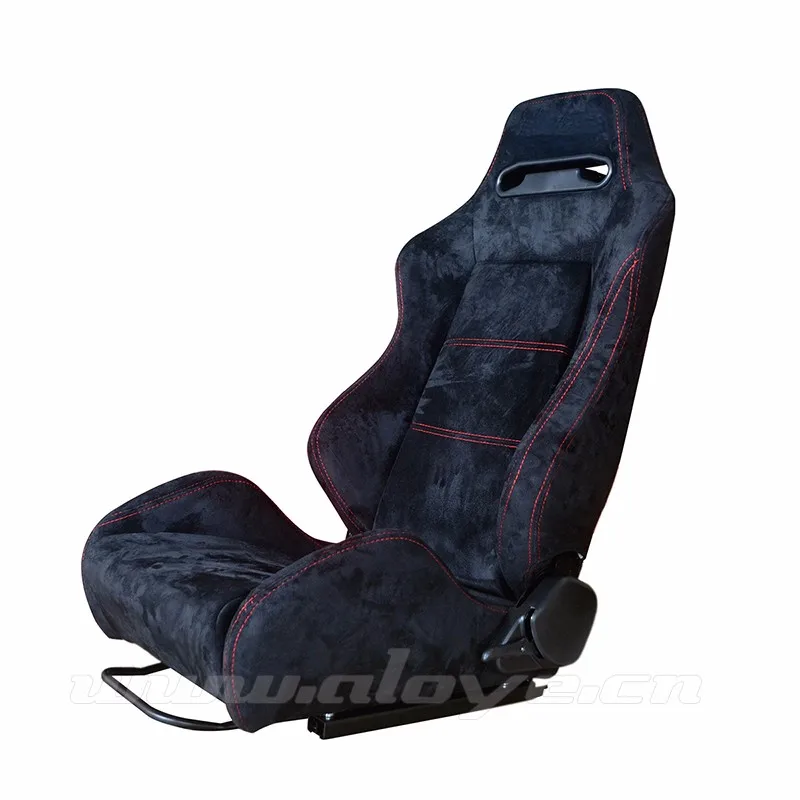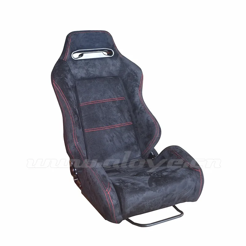 This reclinging racing car seat is new arrival, material is PVC and micro-velvet fabric, with red stitch, can adjust easily, even can made of genuine leather, color can be red, blue, black, you may choose as you like. This racing seat is together with universal rails, also have rails to fit to different type cars, here it is the images below to check.
