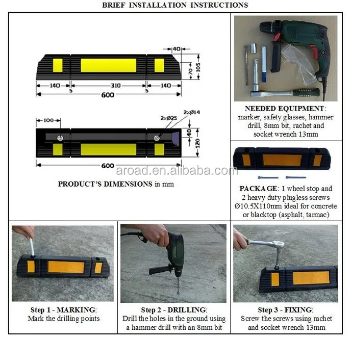 Regular length 500mm rubber wheel stopper from Eroson factory